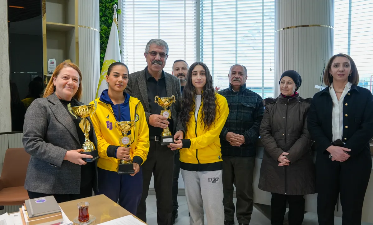 Büyük başarılara imza atan sporcular kupalarıyla birlikte Eşbaşkanlar Leyla Ayaz ve Siraç Çelik’i ziyaret etti.