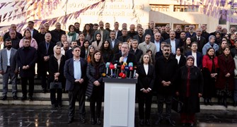Diyarbakır Büyükşehir Belediyesi önünde DEM Partili il ve ilçe belediye başkanları ile birlik