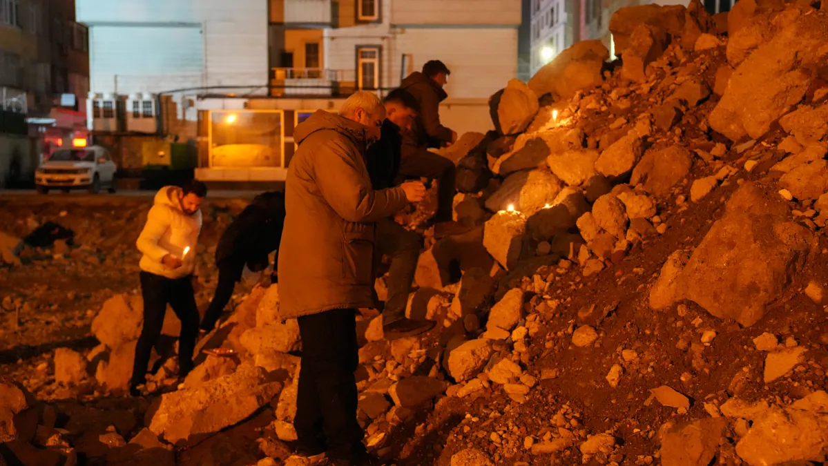 Depremin yaşandığı saat 04.17’de yapılan anmada, enkaz alanında mumlar yakılarak karanfiller bırakıldı.