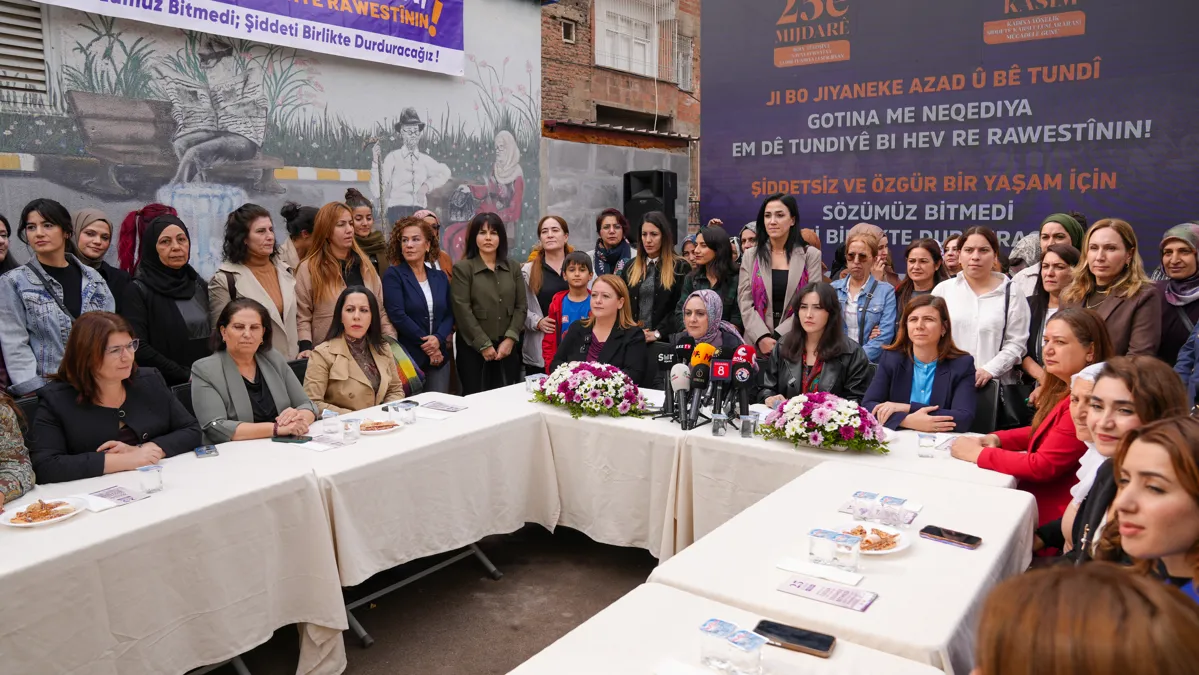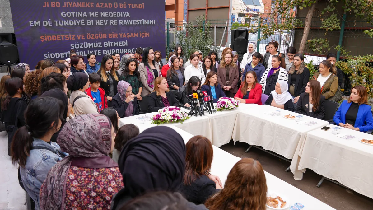 Bağlar Belediyesi, Diyarbakır Büyükşehir ve ilçe belediyeleri, 25 Kasım Kadına Yönelik Şiddete Karşı Uluslararası Mücadele ve Dayanışma Günü etkinliklerini startını verdi. Etkinlikler, “Şiddetsiz ve özgür bir yaşam için sözümüz bitmedi şiddeti birlikte durduracağız” sloganıyla düzenlenecek. Start için Bağlar Belediyesi Kadın Politikaları Müdürlüğüne bağlı Rojin Kabaiş Dayanışma Merkezi’nde basın açıklaması yapıldı. Açıklamaya Bağlar Belediyesi Eşbaşkanı Leyla Ayaz, Eşbaşkan Yardımcısı Jiyan Aslan, belediye eşbaşkanları, Meclis üyeleri, Kadın Politikaları Müdürlükleri, belediyelerin Kadın Meclisleri, kadın kurumlarından temsilciler ile çok sayıda kadın katıldı.