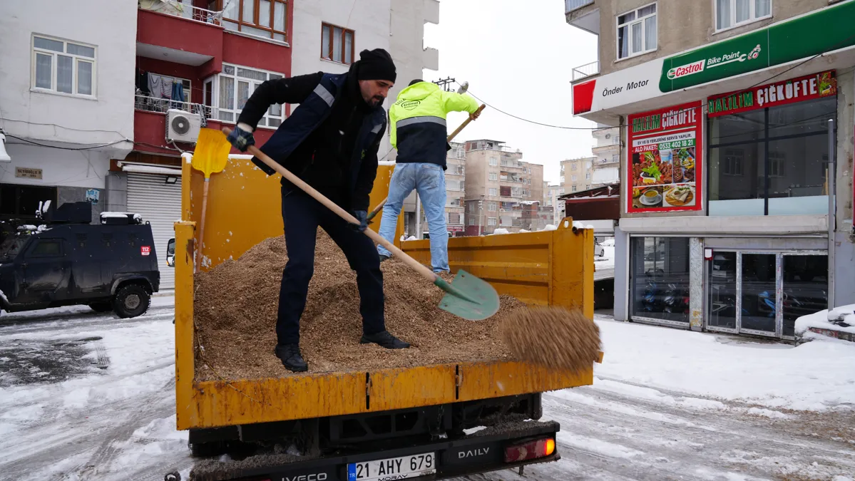 2 Greyder, kar küreme için 2 kamyon, 3 kepçe, tuzlama için 2 kamyonet, acil müdahaleler için 1 pikapla sahada olan ekipler, aktif bir şekilde çalışıyor.
