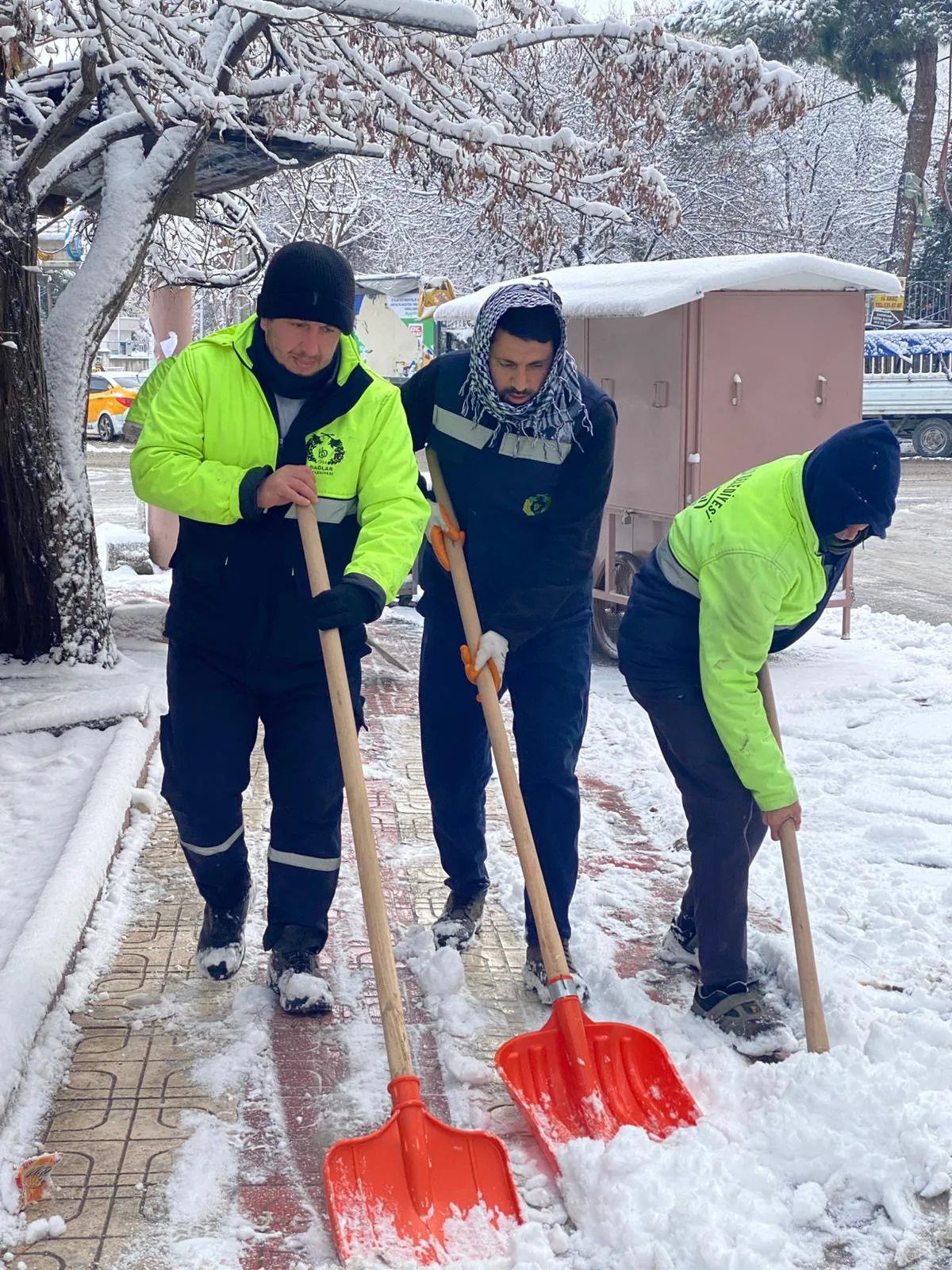 Zabıta Müdürlüğüne bağlı ekipler de halkın ulaşımını rahatlıkla sağlaması için sahada. 32 kişilik ekiple sahada olan Zabıta Müdürlüğü, kaldırımlarda kar temizleme, kar küreme işlemleri yürüterek ulaşımı sağlıyor.