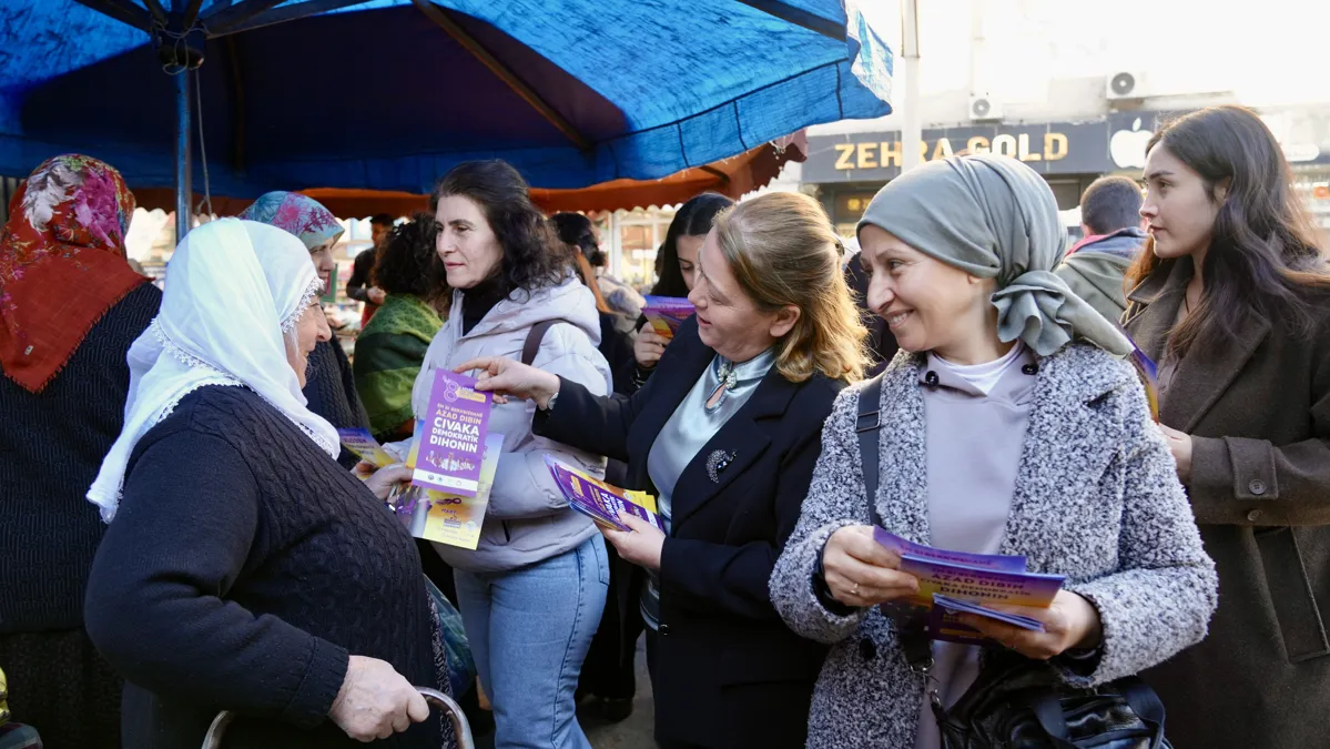 Kadın Politikaları Müdürlüğü bu kapsamda semt pazarında çalışma yaptı. Eşbaşkan Leyla Ayaz, Meclis üyeleri, DEM Parti Bağlar ilçe örgütü ile birlikte Körhat Mahallesi semt pazarında, broşür dağıtarak 8 Mart çağrısı yapıldı.