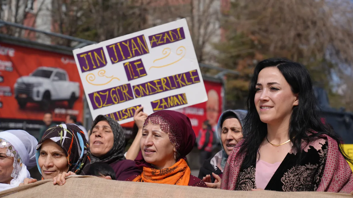 Bağlar Belediyesi Eşbaşkanı Leyla Ayaz, "Direnişle özgürleşiyor demokratik toplumu örüyoruz" sloganıyla düzenlenen 8 Mart mitingine katıldı.