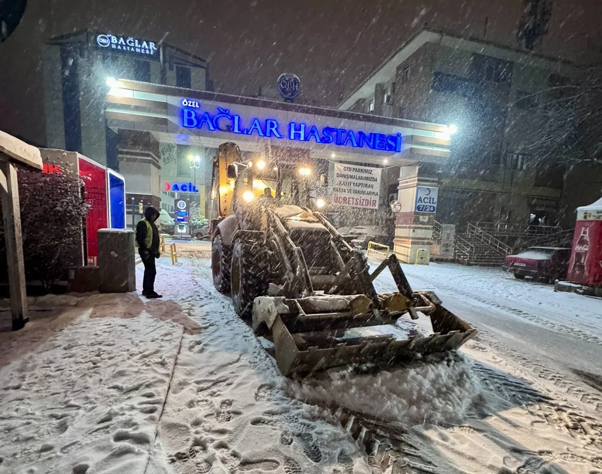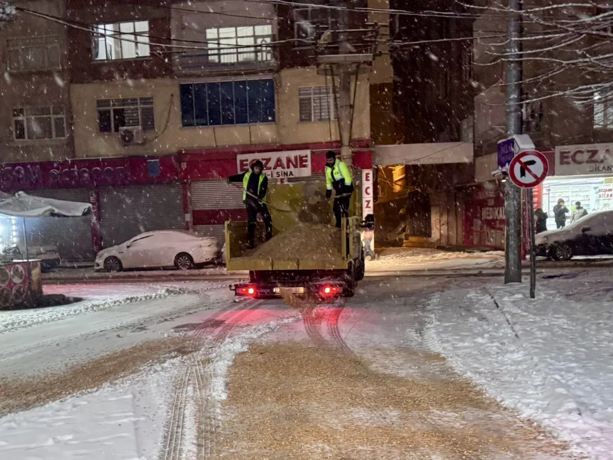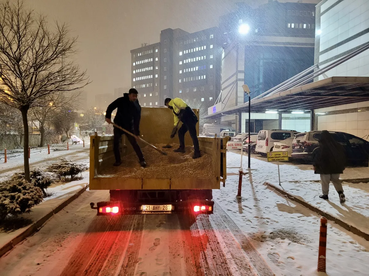 Gece boyunca 4 tuzlama aracı, 4 kepçe, 2 greyder, 2 kar küreme kamyonu ile hastaneler başta olmak üzere çalışmalar yürütüldü.