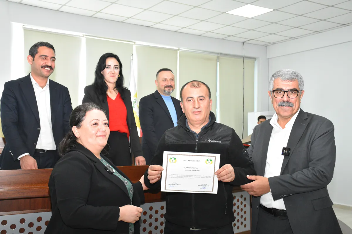 Bağlar Belediyesi Eş Başkanları Leyla Ayaz ve Siraç Çelik, belediyede uzun yıllar boyunca çalışarak halka hizmet eden ve 14 Ocak’ta emekli olan personeller için teşekkür programı düzenledi. Belediye Meclis Toplantı Salonu’nda düzenlenen programa, Eş Başkanların yanı sıra Eş Başkan Yardımcıları Jiyan Aslan, Reşat Yücel, Suat Özdemir ve emekli personeller katılım sağladı.