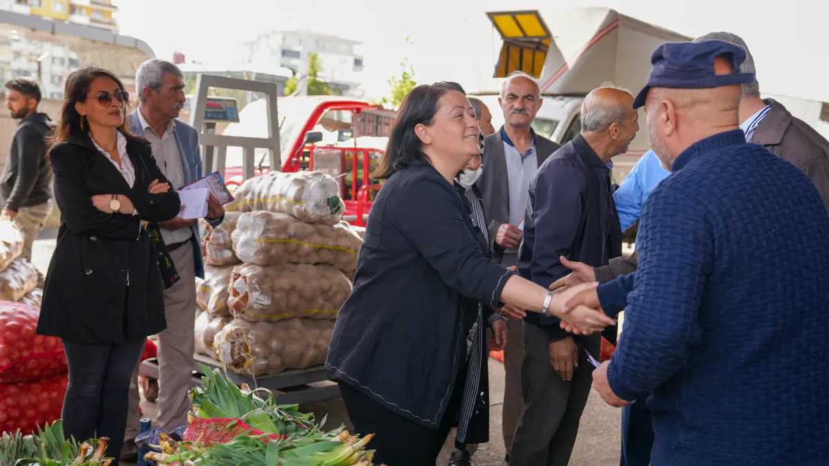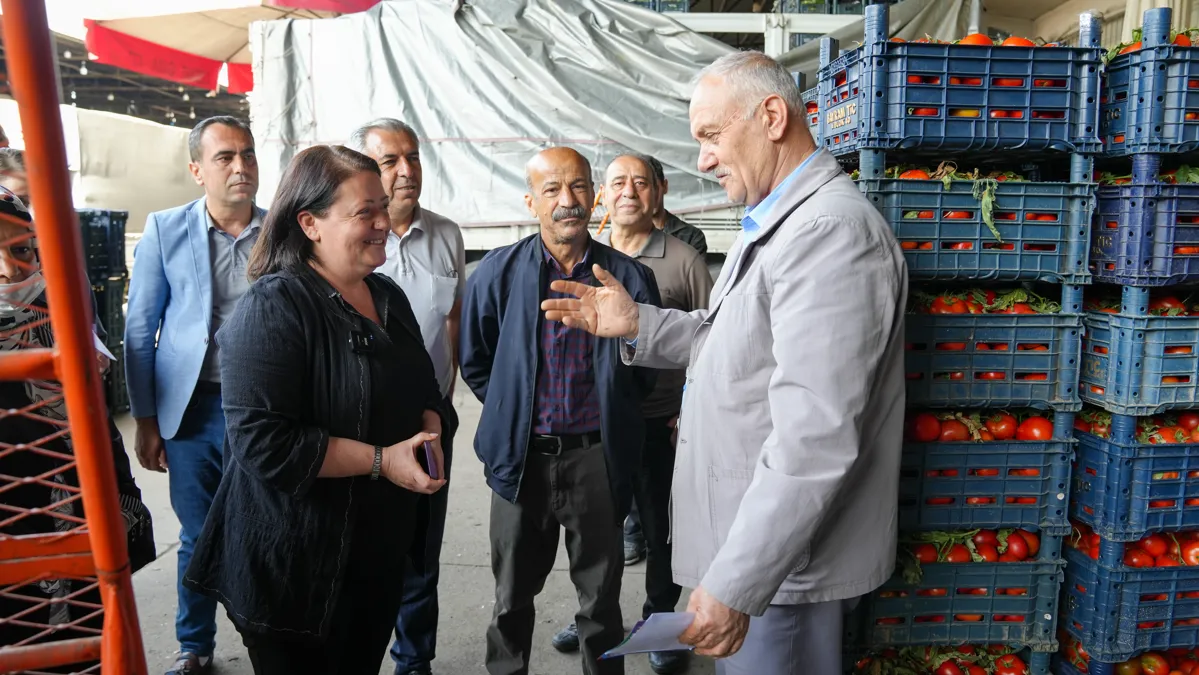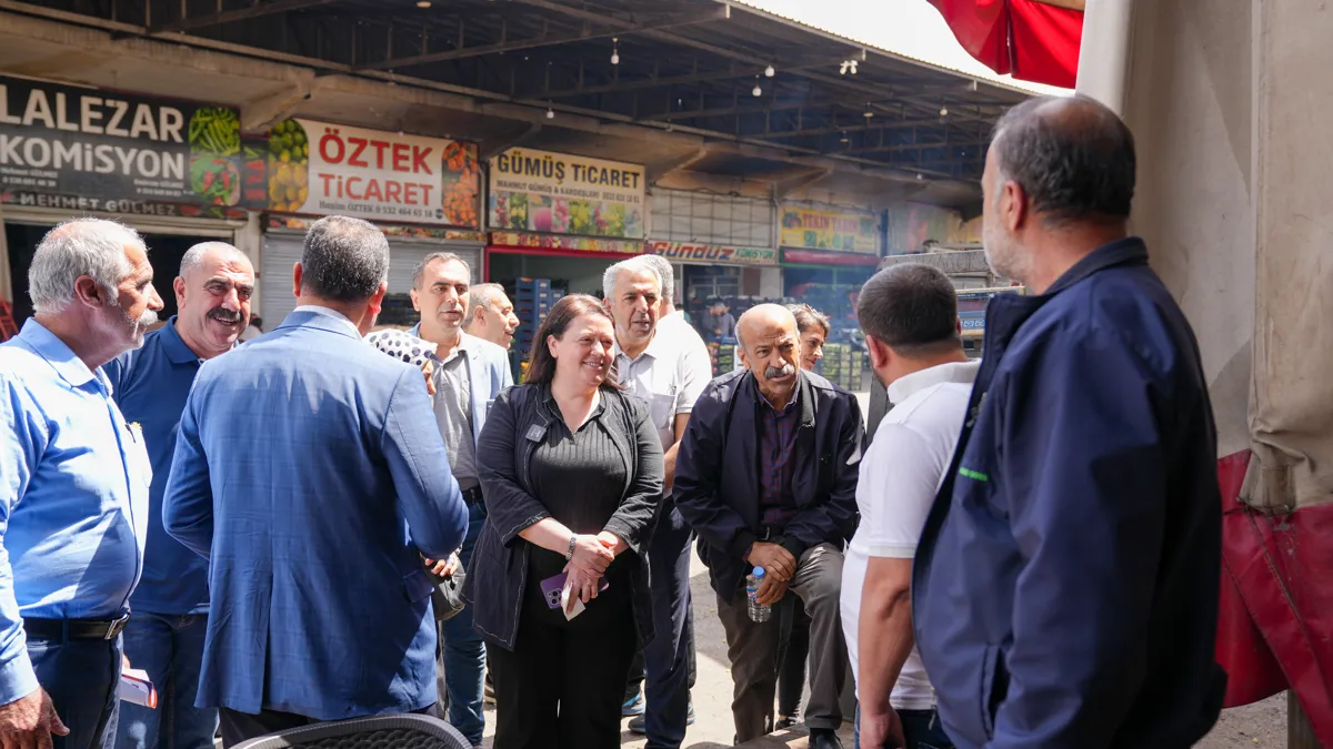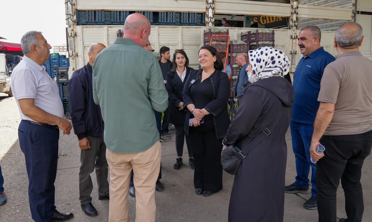 Bağlar Belediyesi Eş Başkanı Leyla Ayaz, esnaf ziyaretleri kapsamında Yenihal’de bulunan Büyük Sebze Hali’nde esnafla bir araya geldi.
