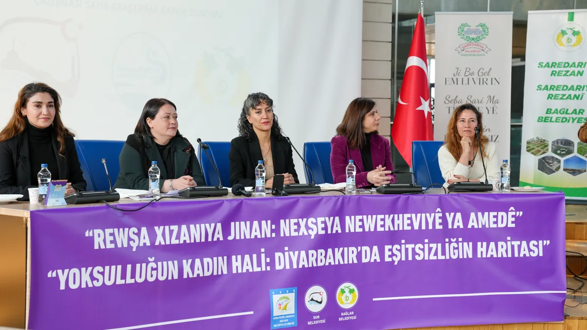 Güneydoğu Anadolu Bölgesi Belediyeler Birliği (GABB) Kadın ve Aile Hizmetleri Müdürlüğü koordinatörlüğünde Bağlar ve Sur belediyelerinin işbirliğiyle hazırlanan “Yoksulluğun kadın hali: Diyarbakır’da eşitsizliğin haritası” başlıklı saha araştırmasının raporu açıklandı. Yenişehir Belediyesi hizmet binasında yapılan basın toplantısına, Bağlar Belediyesi Eş Başkanı Leyla Ayaz, Büyükşehir Belediyesi Eş Başkanı Serra Bucak, Mardin Büyükşehir Belediyesi Eş Başkanı Devrim Demir, Sur Belediyesi Eş Başkanı Fatma Gulan Önkol, belediye eş başkanları, Meclis üyeleri ve sivil toplum örgütlerinin temsilcileri katıldı.