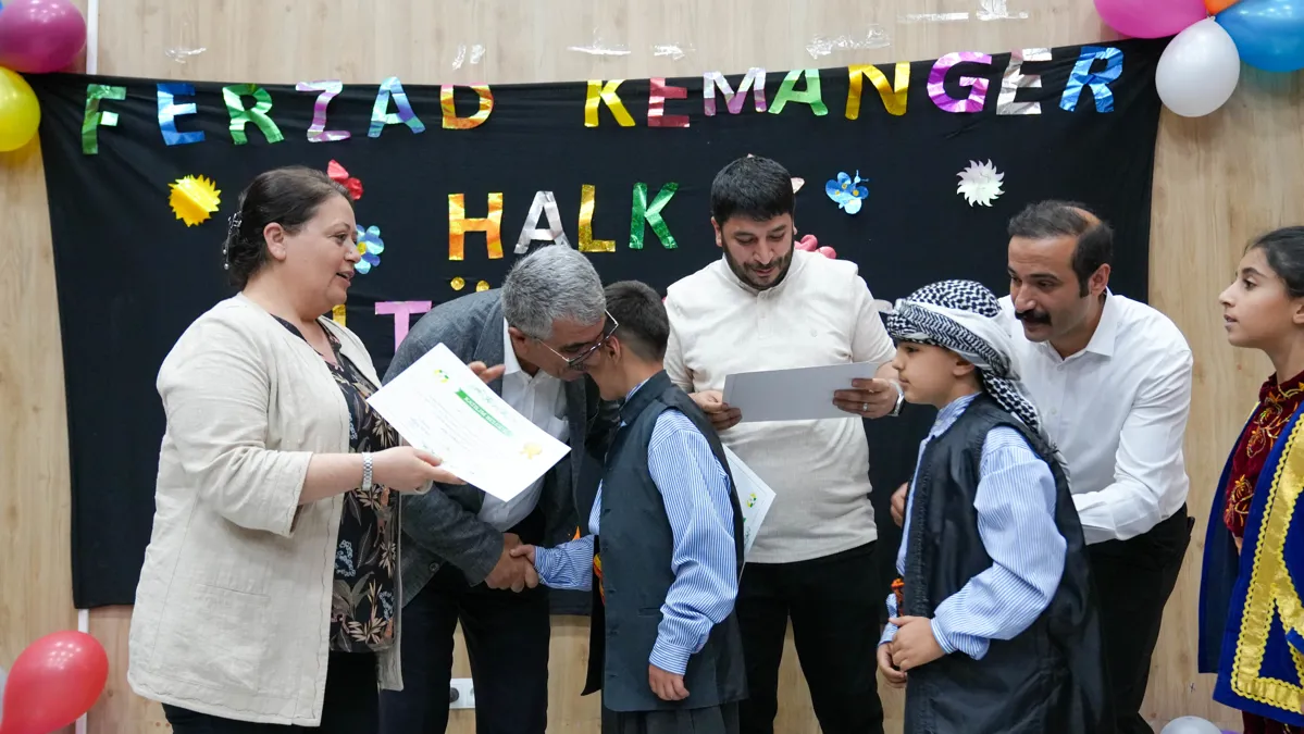 Bağlar Belediyesi Kültür ve Sosyal İşler Müdürlüğü’ne bağlı Ferzad Kemanger Halk Kütüphanesi’nde kurslara, atölyelere katılan çocuklar ile okuma yazma kursuna katılan kadınlar sertifikalarını aldı. Kursiyerler için Rezan Gençlik Merkezi’nde mezuniyet töreni düzenlendi. Törene Eş Başkanlar Leyla Ayaz ve Siraç Çelik de meclis üyeleriyle birlikte katıldı. Törende sahne alan çocuklar çeşitli etkinliklerle renkli görüntüler oluşturdu. Eş Başkanlar kursiyerlere sertifikalarını takdim ederek, başarılarından dolayı tebrik etti.