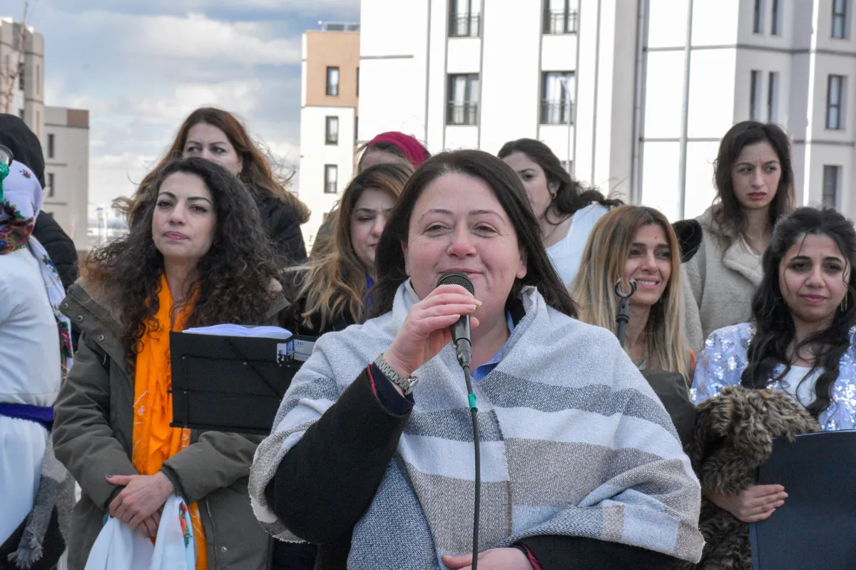 Kadının emeğinin yok sayıldığını, kadın katliamlarının arttığını belirten Ayaz, “Bizler DEM Partili kadınlar olarak, kadın katliamlarının önüne geçmek için mücadele edeceğimizin sözünü veriyoruz” diye konuştu.
