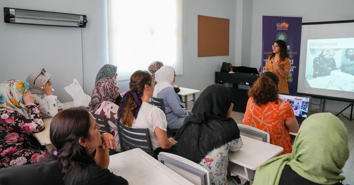 Diyarbakır Büyükşehir Belediyesi Kadın Politikaları Daire Başkanlığı’nın “Döngümüzle dönüşüyoruz, pedimizi kendimiz dikiyoruz” sloganıyla düzenlediği atölyeler bu hafta Bağlar Belediyesi ile birlikte yapıldı.