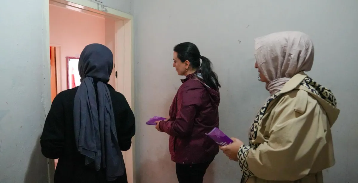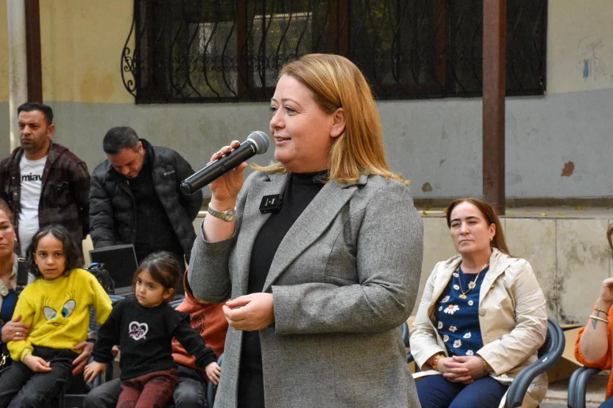 Mahalledeki Kardelen Kadın Merkezi’nin kayyım tarafından kapatıldığını ve başka bir kuruma devredildiğini hatırlatan Ayaz, şimdi bu alanı kadınlar için atölyeye dönüştüreceklerini ifade etti. Kadınların istekleri doğrultusunda atölyelerin oluşacağını belirten Ayaz, kadınlardan taleplerini dinledi.