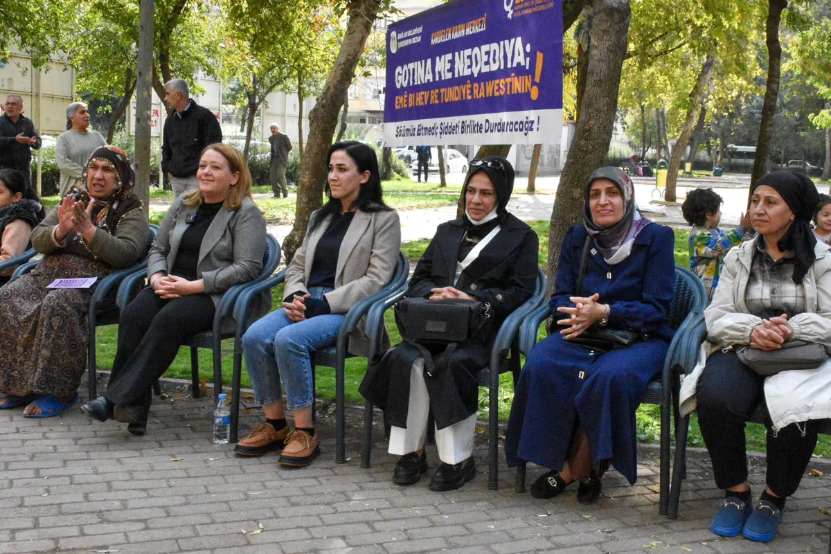 Bağlar Belediyesi Kadın Politikaları Müdürlüğü ile Kadın Meclisi, 25 Kasım Kadına Yönelik Şiddete Karşı Uluslararası Mücadele Günü çalışmaları kapsamında Mevlana Halit Mahallesi’nde kadın buluşması düzenledi. Buluşma öncesi mahallede saha çalışması yapılarak, şiddete karşı bilgilendirici broşürler dağıtıldı ve kadınlar buluşmaya davet edildi. Kadın Yaşam Parkı’nda “Şiddetsiz ve özgür bir yaşam için sözümüz bitmedi şiddeti birlikte durduracağız” sloganıyla düzenlenen buluşmaya Belediye Eşbaşkanı Leyla Ayaz, Eşbaşkan Yardımcısı Jiyan Aslan, Meclis üyeleri ve mahalleden çok sayıda kadın katıldı.