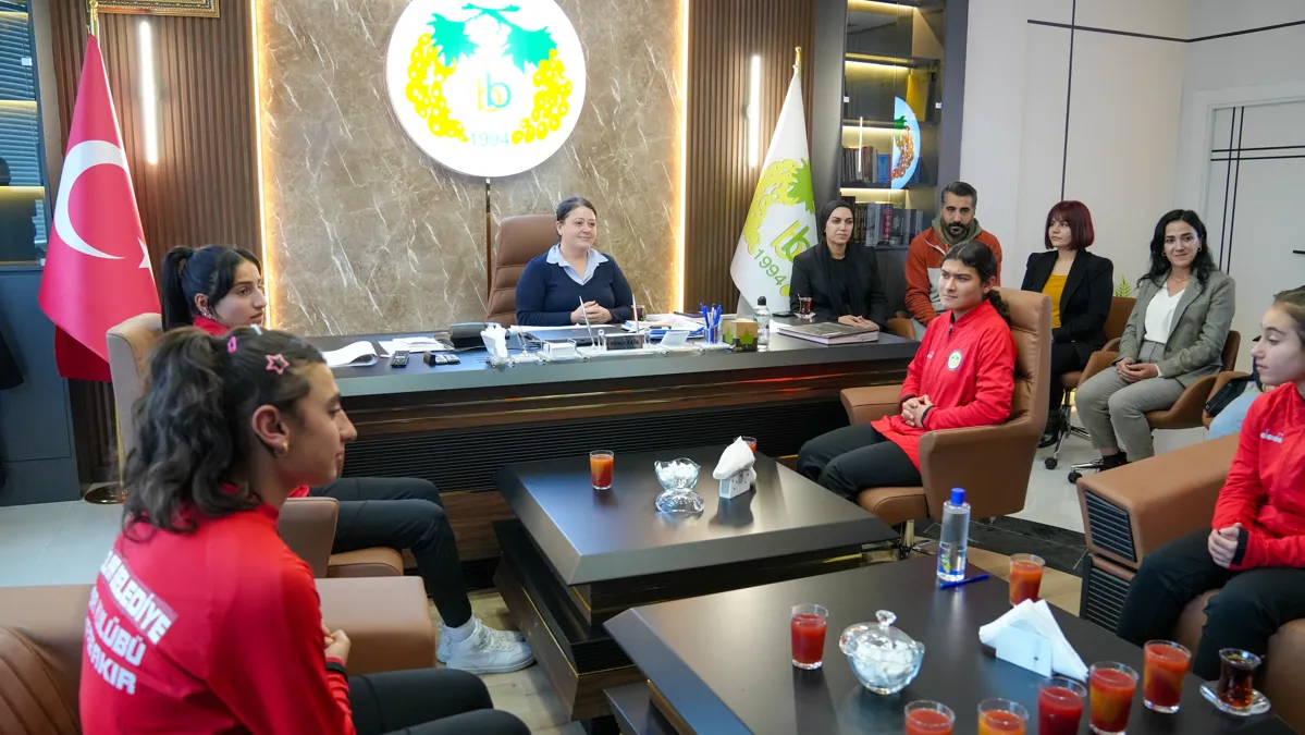 Bağlar Belediyespor’un Türkiye şampiyonlukları elde eden genç atletleri ile Diyarbakır şampiyonu olan kadın basketbol takımı Eş Başkan Leyla Ayaz’ı ziyaret etti.