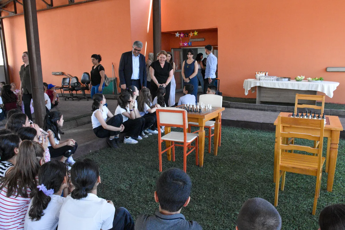 Çocuklarla selamlaşarak sohbet eden eşbaşkanlar tebrik ederek, yaşamları boyunca başarı diledi.