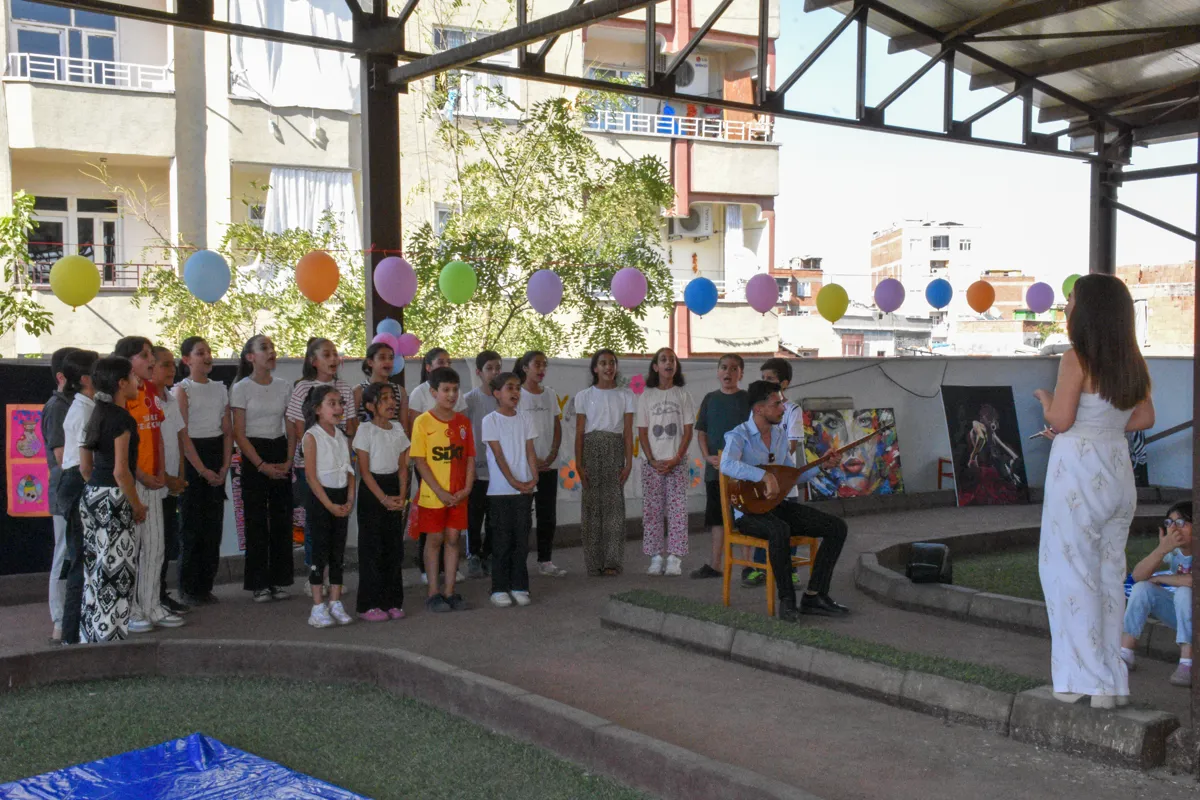 Çocuklar sahne alarak yaz boyunca öğrendikleriyle renkli etkinlikler yaptı.
