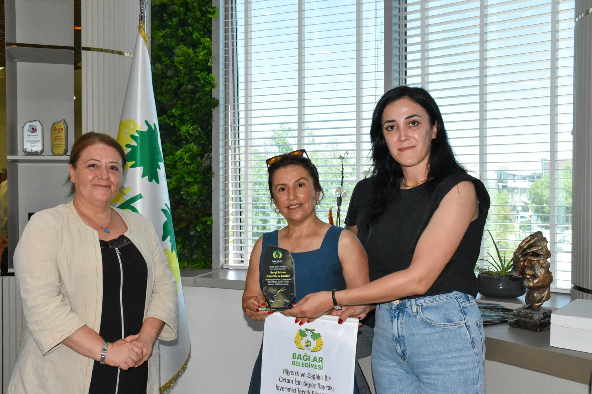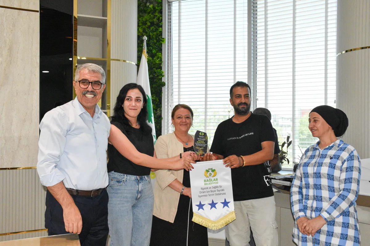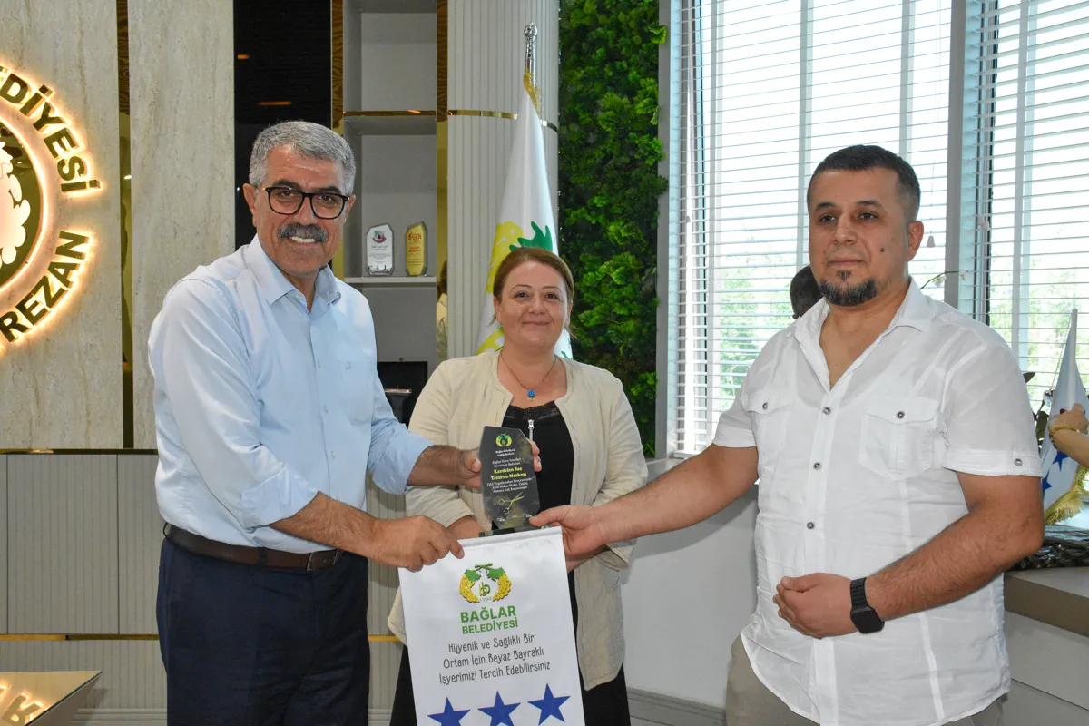 Bağlar Belediyesi Sağlık Merkezi’nin hayata geçirdiği “Beyaz Bayrak ve Altın Makas” projesi ile kuaför, berber, kişisel bakım ve cilt bakımı yapan iş yerleri denetlendi. Standartlara özenle uyan işletmelere “Beyaz Bayrak ve Altın Makas” plaketi verildi. Plaketler Belediye Eşbaşkanları Leyla Ayaz ve Siraç Çelik tarafından takdim edildi.