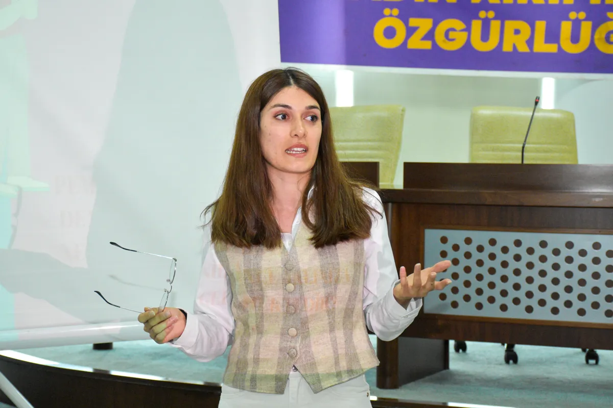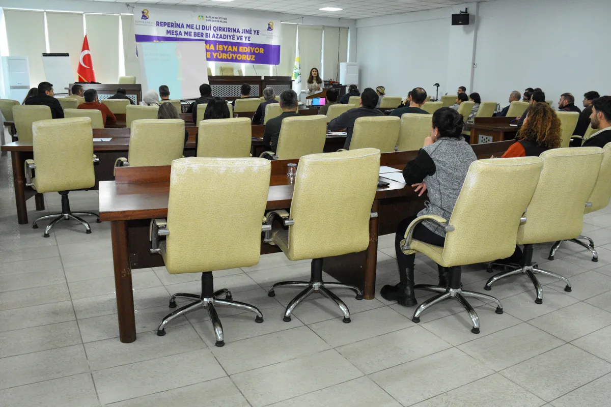 Belediye çalışanları için Meclis Toplantı Salonu’nda düzenlenen seminer, Diyarbakır Barosu Kadın Hakları Merkezi’ne mensup avukatlar Sidar Eneş ve Feyzanur Işık tarafından verildi.