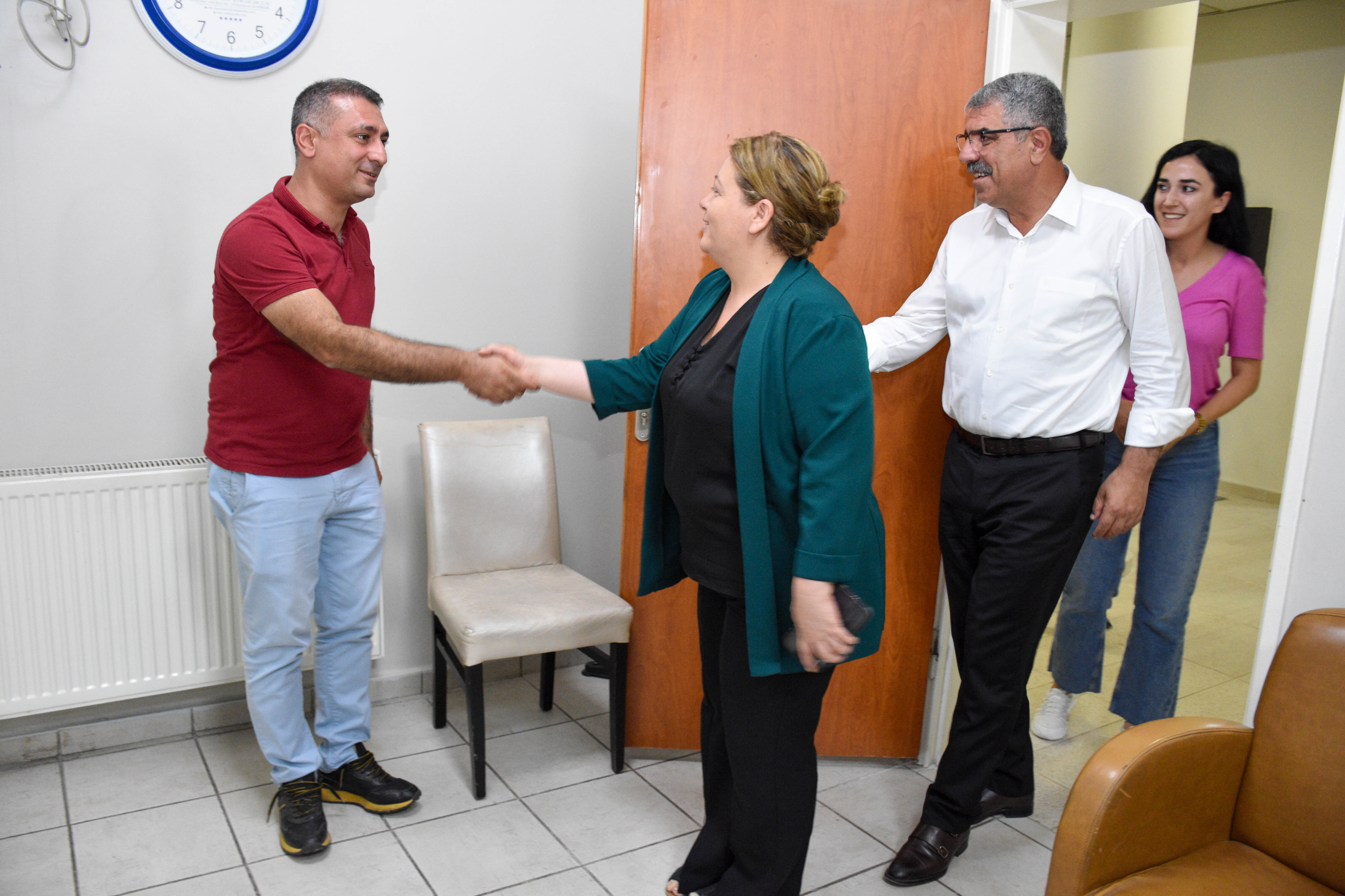 Belediye hizmet binasında birimleri ziyaret eden eş başkanlar, tüm personelle tek tek selamlaşarak, bayramını kutladı.