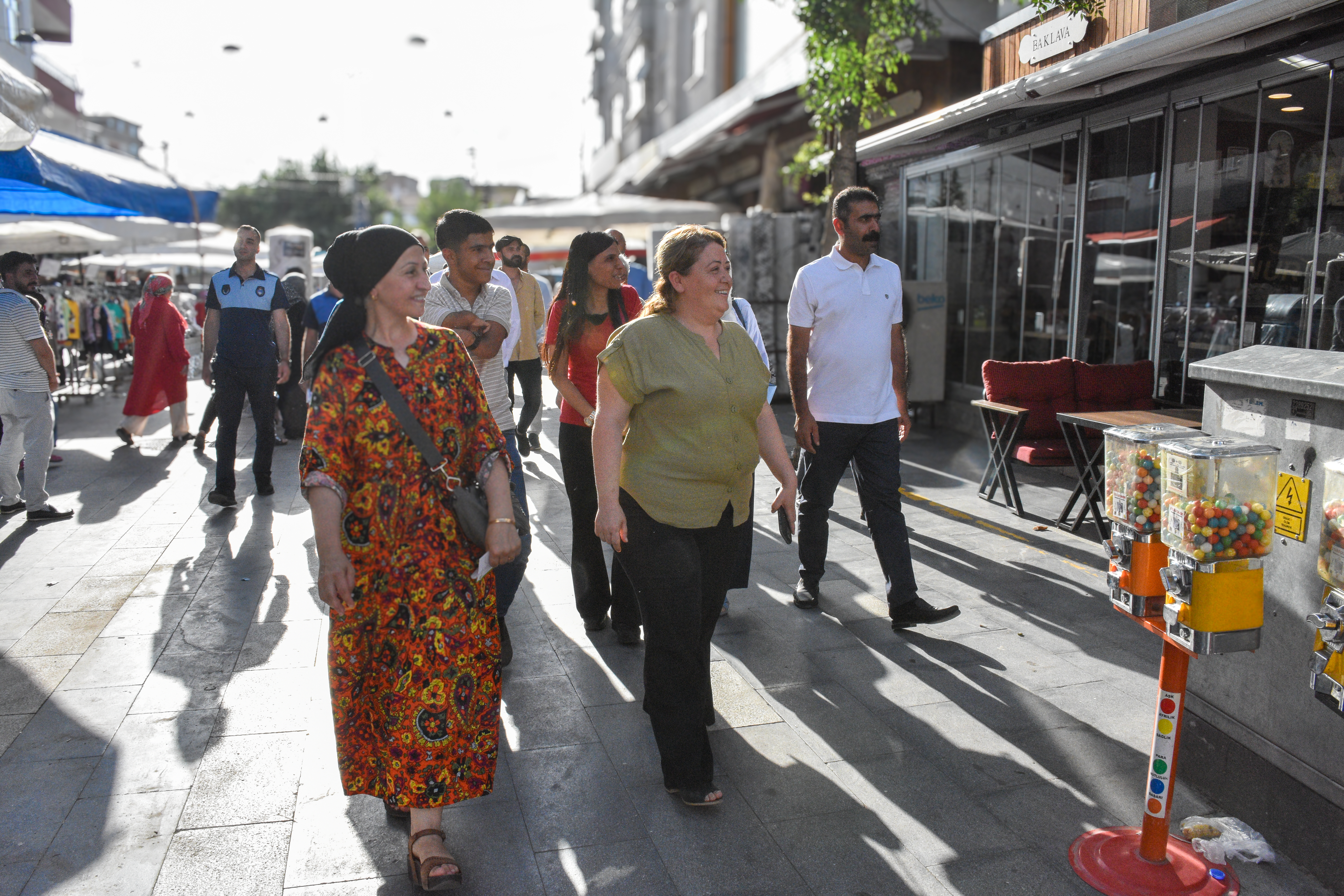 Eş başkanlar tek tek ziyaret ettikleri esnafın sorunlarını dinleyerek, birlikte çözüm üretme noktasında değerlendirmelerde bulundu. Eş Başkanlara eşlik eden zabıta ekipleri ise ihtiyaçları not aldı.