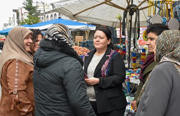 Pazar boyunca yurttaşlar ve esnafla bire bir konuşan Ayaz, kadına yönelik şiddete karşı bilgilendirici broşür verdi. Eş Başkan Ayaz, şiddetin son bulması için tüm yurttaşların sorumluluk alması gerektiğini vurguladı.
