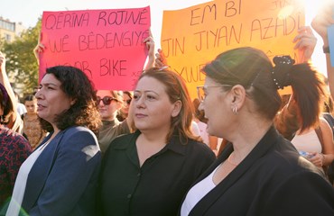 Açıklamada konuşan Rojin Kabaiş'in kız kardeşi, dosyada bir yıldır süren kısıtlama kararına dikkat çekerek, dosyada hala yanıtlamamış olan soruları bir kez daha sordu. Konuşmacılar Rojin ve katledilen tüm kadınlar için mücadeleye devam edeceklerinin mesajını verdi.