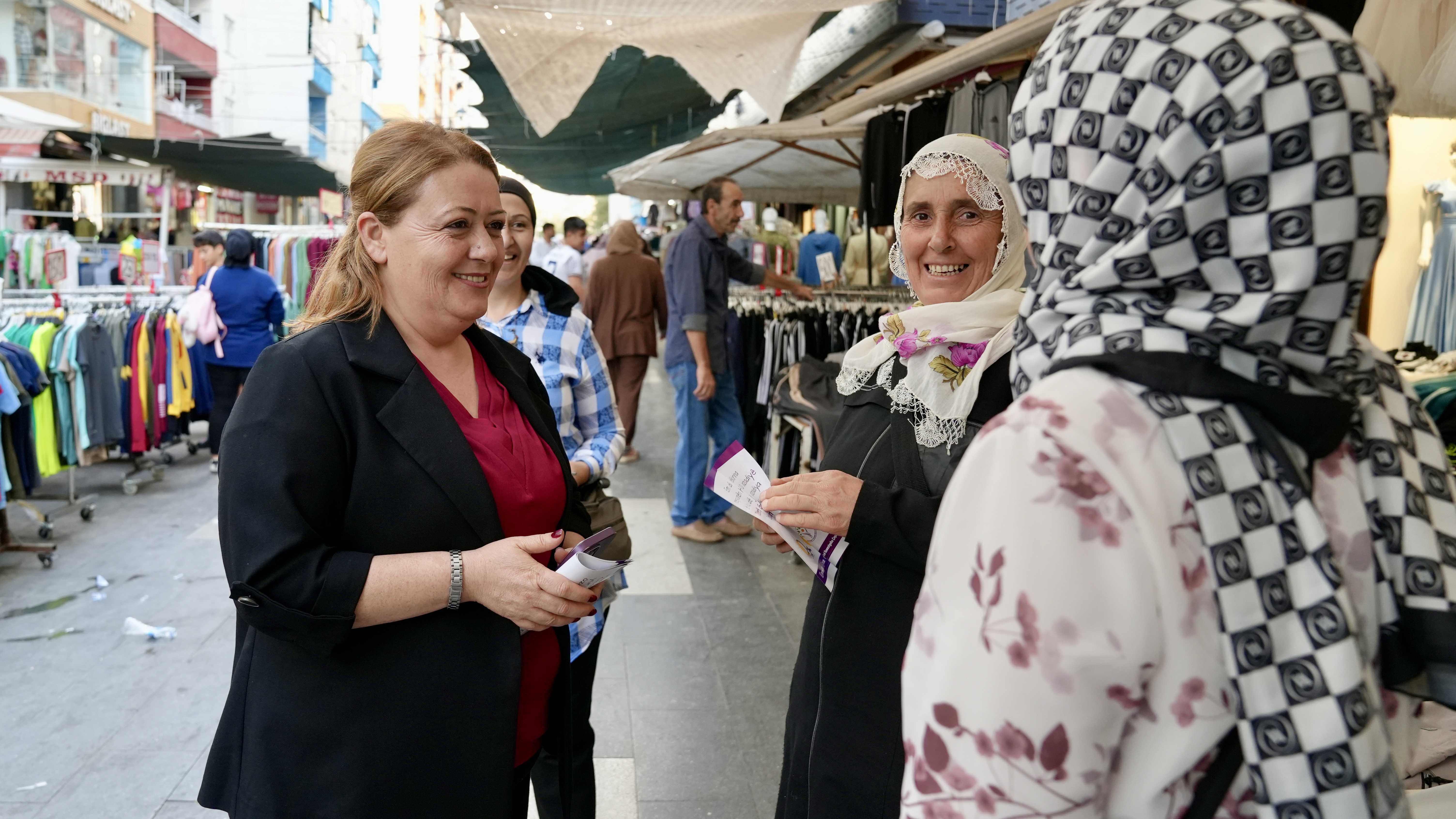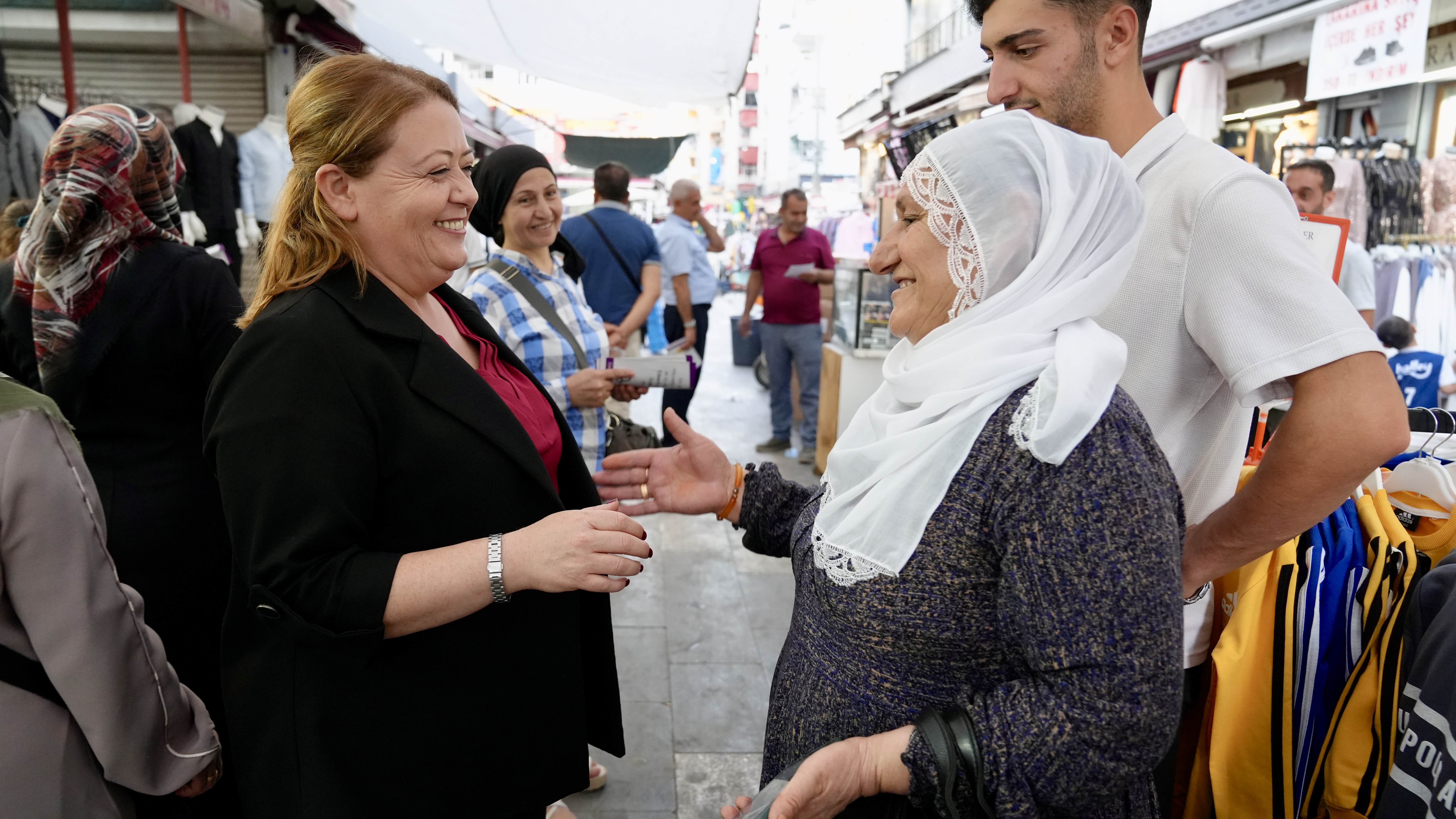 Bağlar Belediyesi Eşbaşkanı Leyla Ayaz, meclis üyeleriyle birlikte Şeyh Şamil Mahallesi semt pazarı ile Sakarya Caddesi esnafını ziyaret etti.