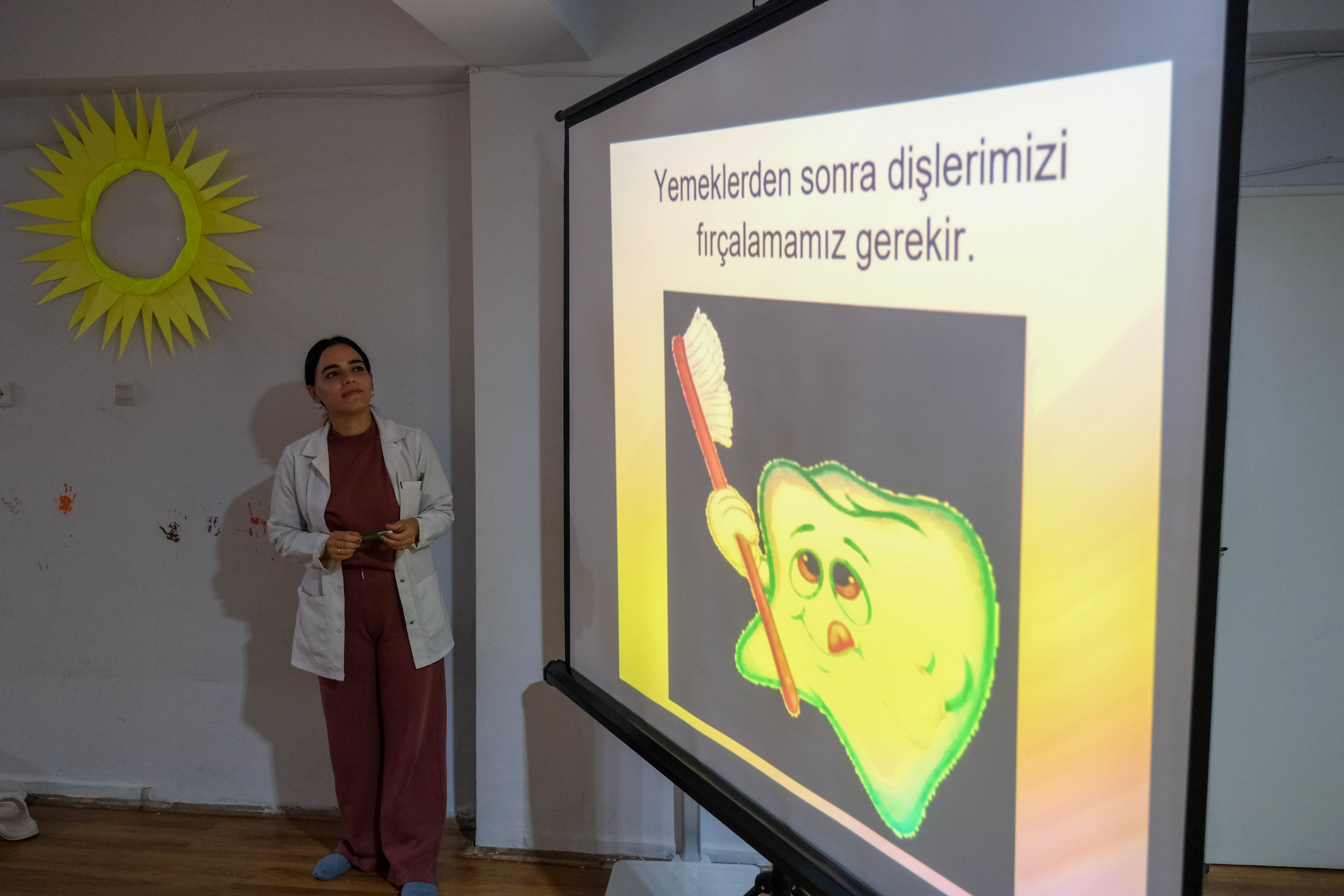 Bağlar Belediyesi Sağlık Merkezi ile Kadın Politikaları Müdürlüğü, çocuklar için sağlık çalışması yaptı. Sağlık Merkezi “Herkese ana dilde sağlık eğitimi hakkı” şiarıyla Kardelen Kadın Merkezi’nde oyun odasındaki çocuklara eğitim verdi. Diş hekimi tarafından Kürtçe ağız ve diş sağlığı eğitimi verildi. Eğitim sonrası ağız diş muayenesi yapıldı ve çocuklara diş macunu ve fırça hediye edildi.D