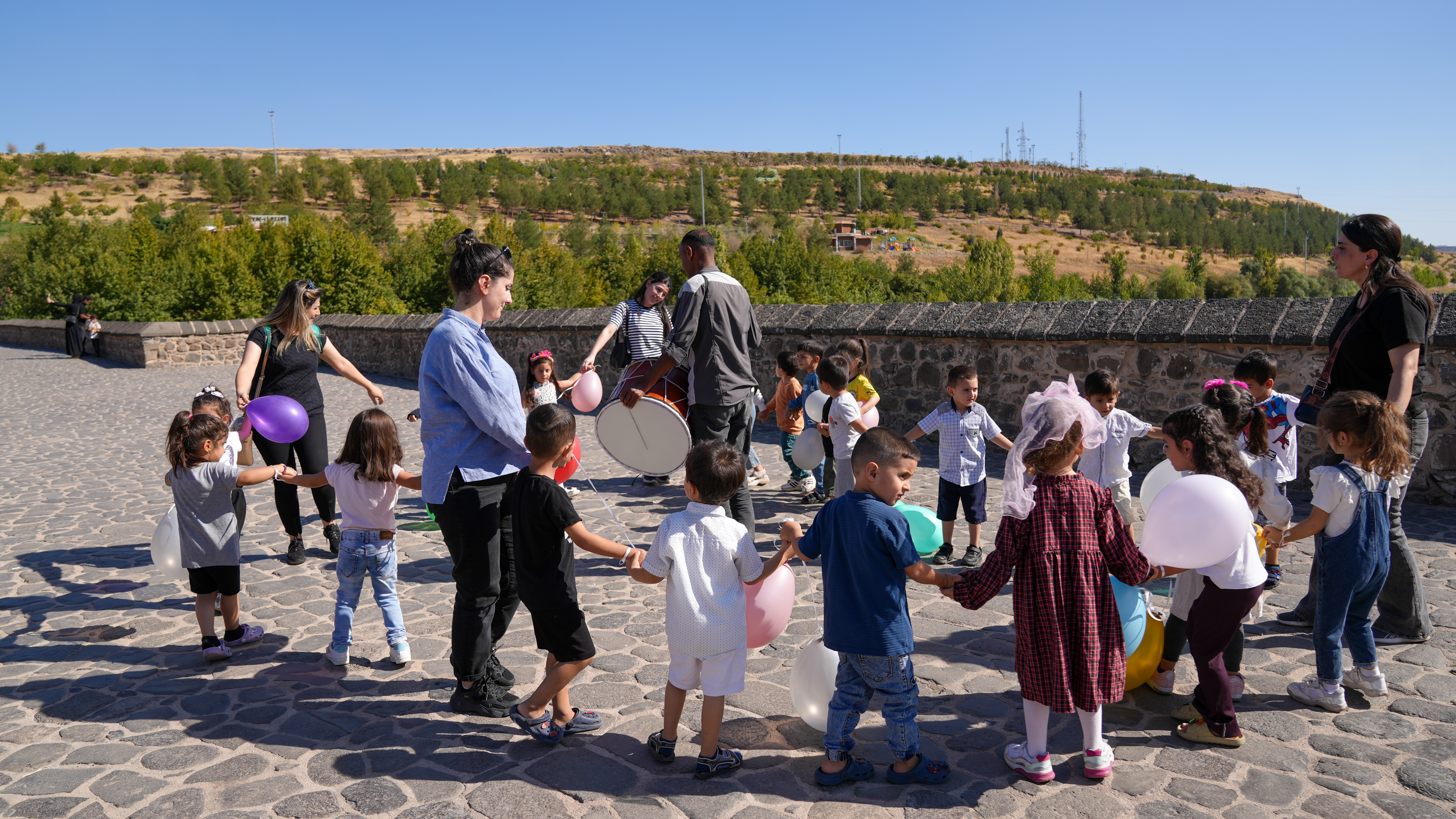 Bağlar Belediyesi Kadın Politikaları Müdürlüğüne bağlı Narin Çok Amaçlı Çocuk ve Aile Merkezinde oyun odasına katılan çocuklar için renkli bir etkinlik düzenlendi. Dünya Çocuk Günü dolayısıyla tarihi On Gözlü Köprü'ye gelen çocuklar, burada önce köprünün adını ve tarihini öğrendi. Ardından ellerindeki balonları gökyüzüne bıraktı. Çocuklar uçurtma uçurarak gökyüzünü renklendirdi.