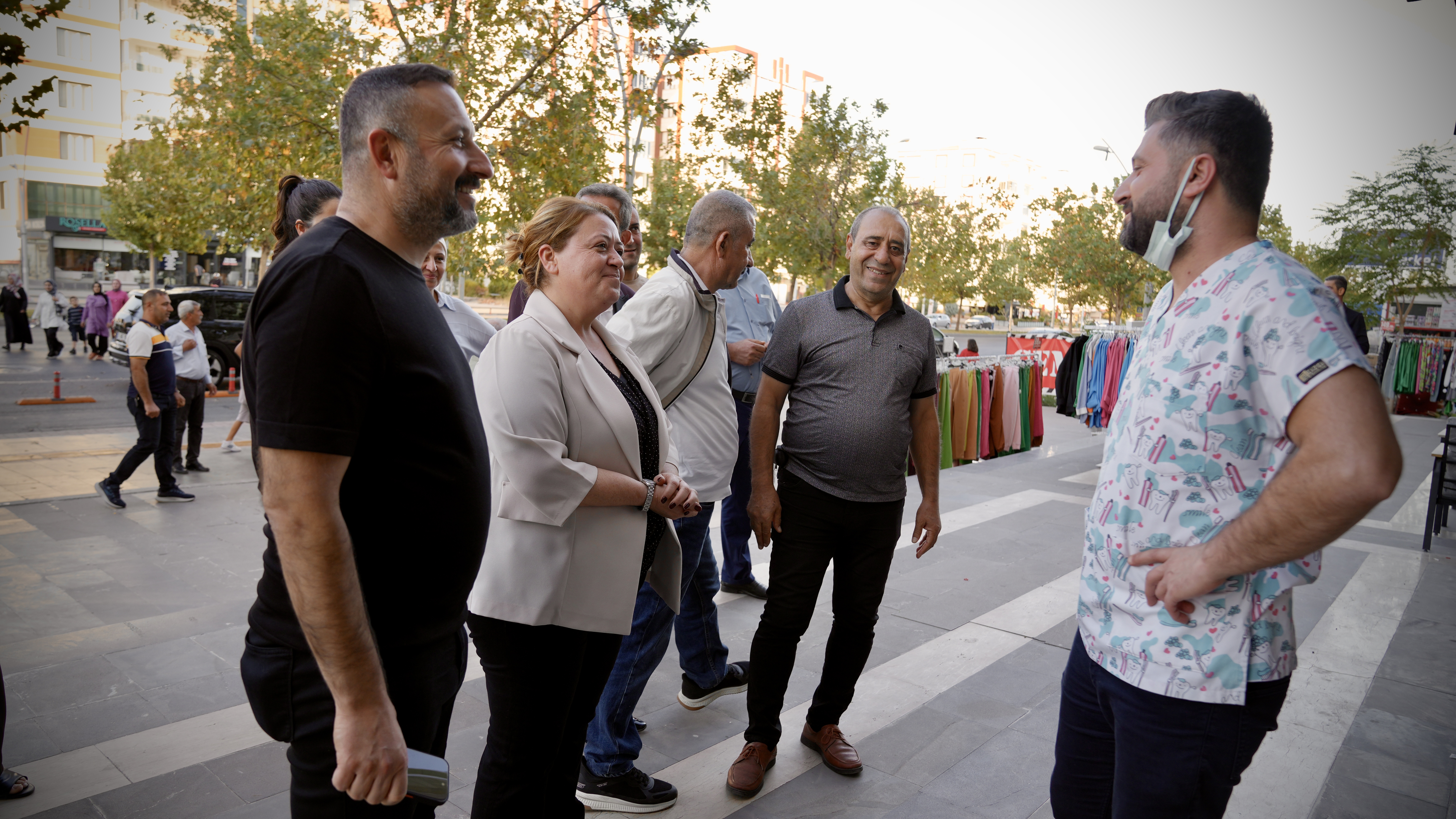 Bağlar Belediyesi Eşbaşkanı Leyla Ayaz, Bağcılar Mahallesi Qamışlo Bulvarı'nda esnafı ziyaret etti.