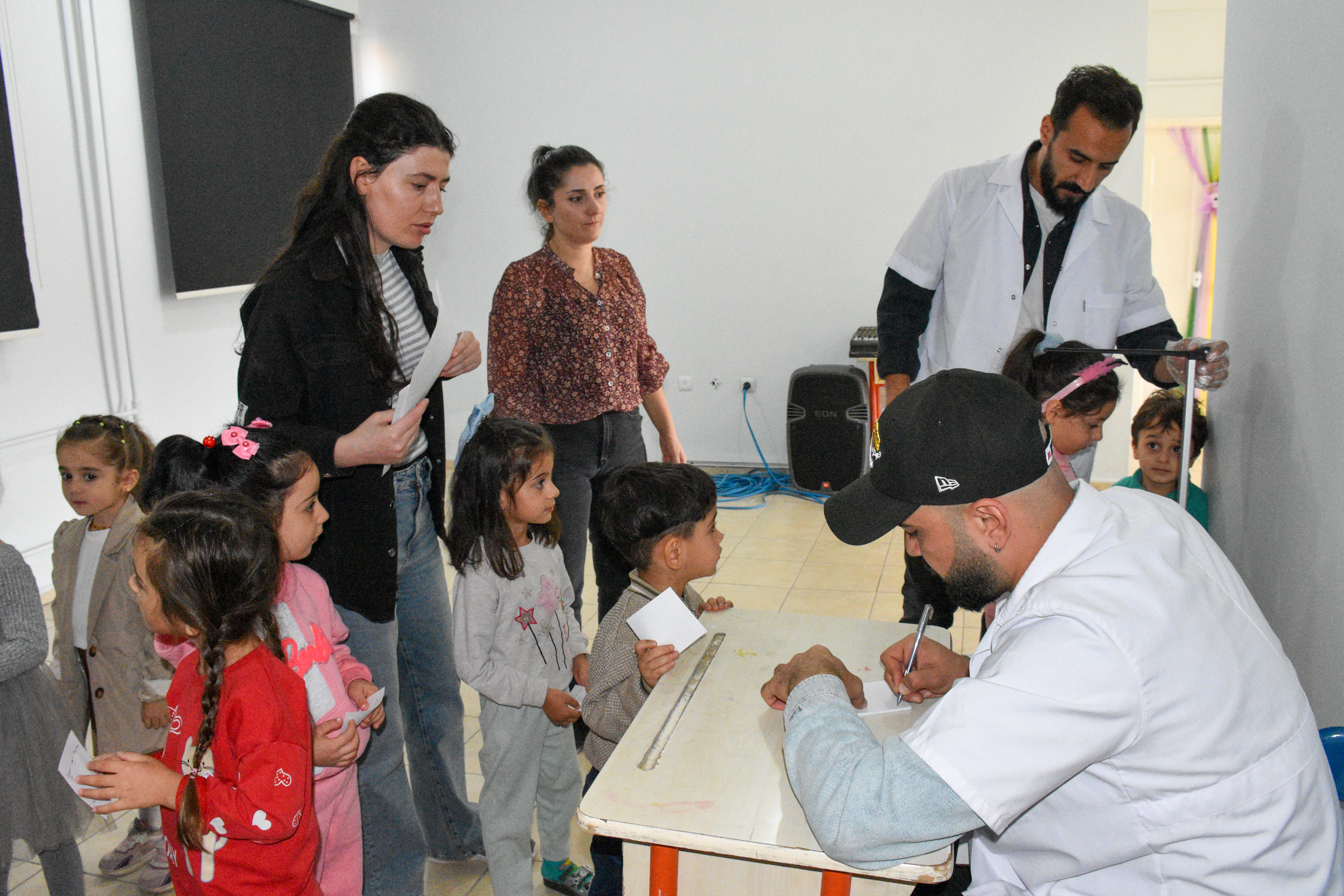 Gelişim açısından da muayene yapıldı. Gelişme geriliği tespit edilen çocukalar için tedaviye başlanarak, gerekli vitamin, çinko ve anemi şurupları ücretsiz olarak dağıtıldı. Çocukların velileri için de Kürtçe hijyen eğitimi düzenlendi.