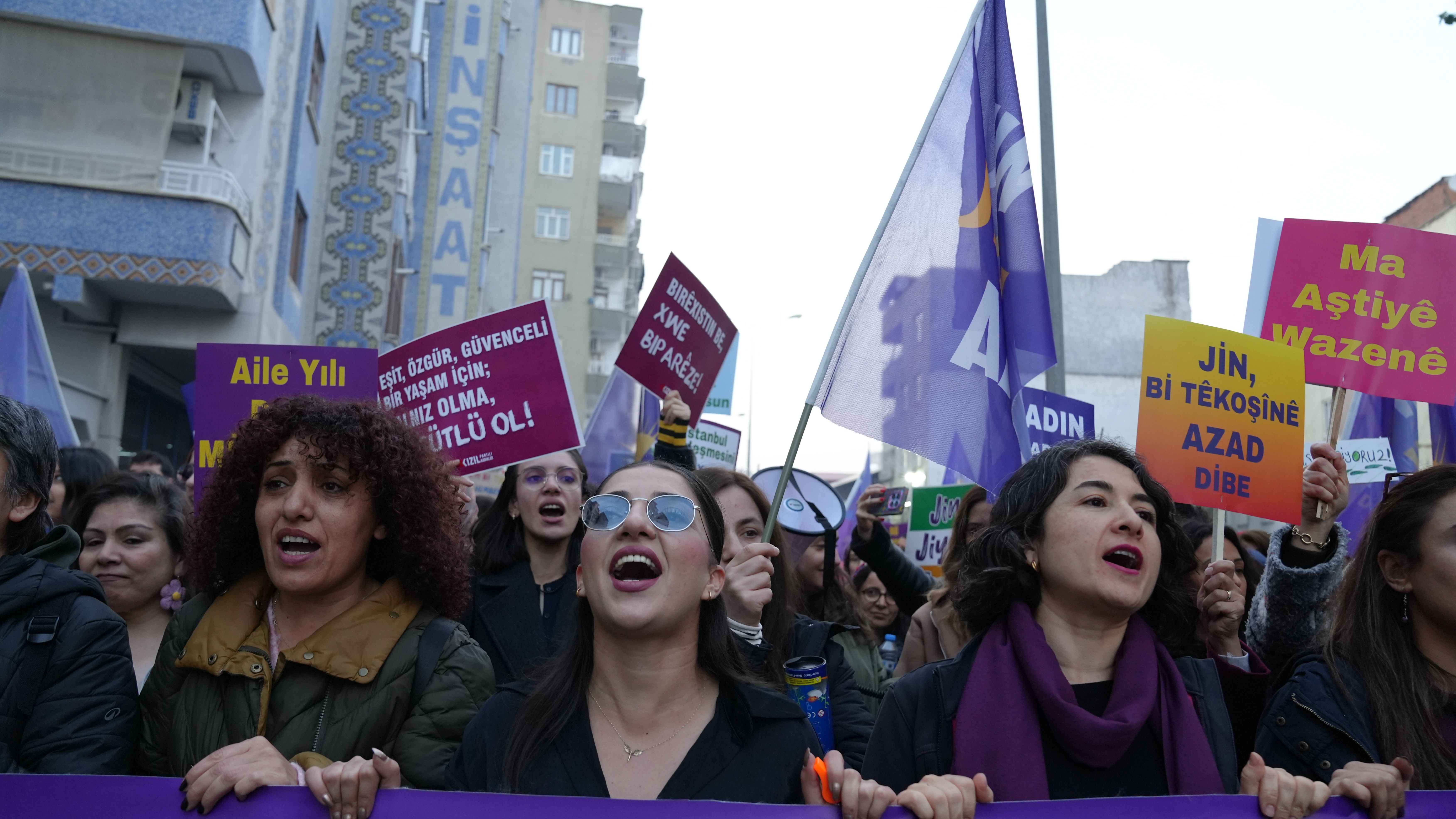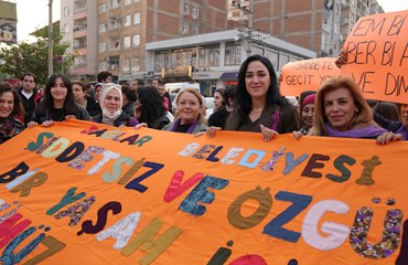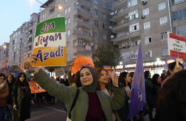 Diyarbakır'da 25 Kasım Kadına Yönelik Şiddete Karşı Uluslararası Mücadele Günü yürüyüşü düzenlendi. E Tipi Kapa Cezaevi'nde önünden Ofis semtine kadar süren yürüyüşe Eşbaşkanlar Leyla Ayaz ve Siraç Çelik, Eşbaşkan Yardımcısı Jiyan Aslan, Meclis üyeleri, birim müdürleri ve kadın emekçiler birlikte binlerce kadın katıldı. “Demokratik toplumla şiddetsiz özgür yaşama” sloganıyla düzenlenen yürüyüş boyunca kadınların sesleri sokaklarda yankılandı. Yapılan açıklamalarda, kadına yönelik şiddeti yaratan cinsiyetçi politikaların, savaş politikalarının son bulması çağrısı yapıldı.