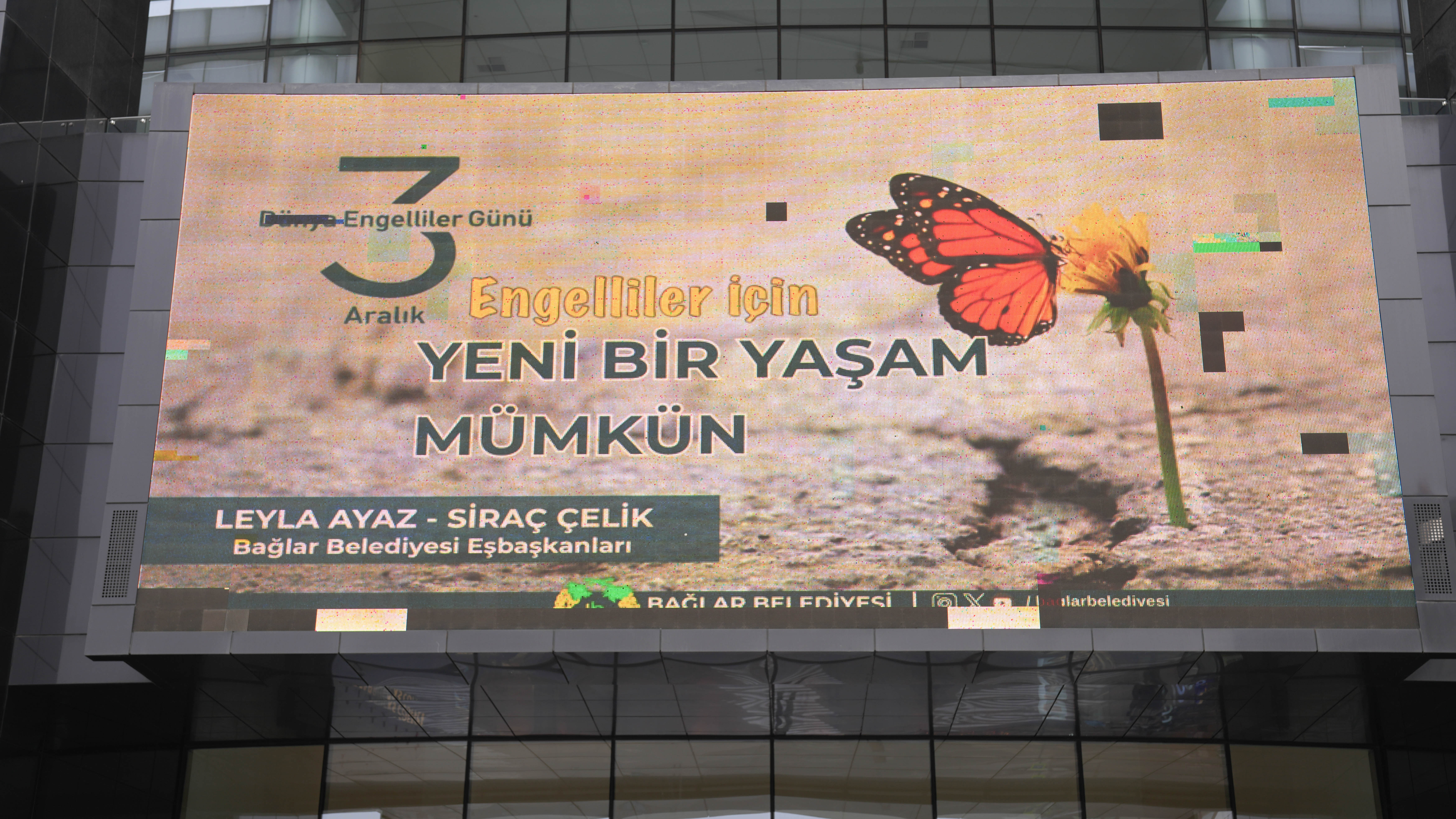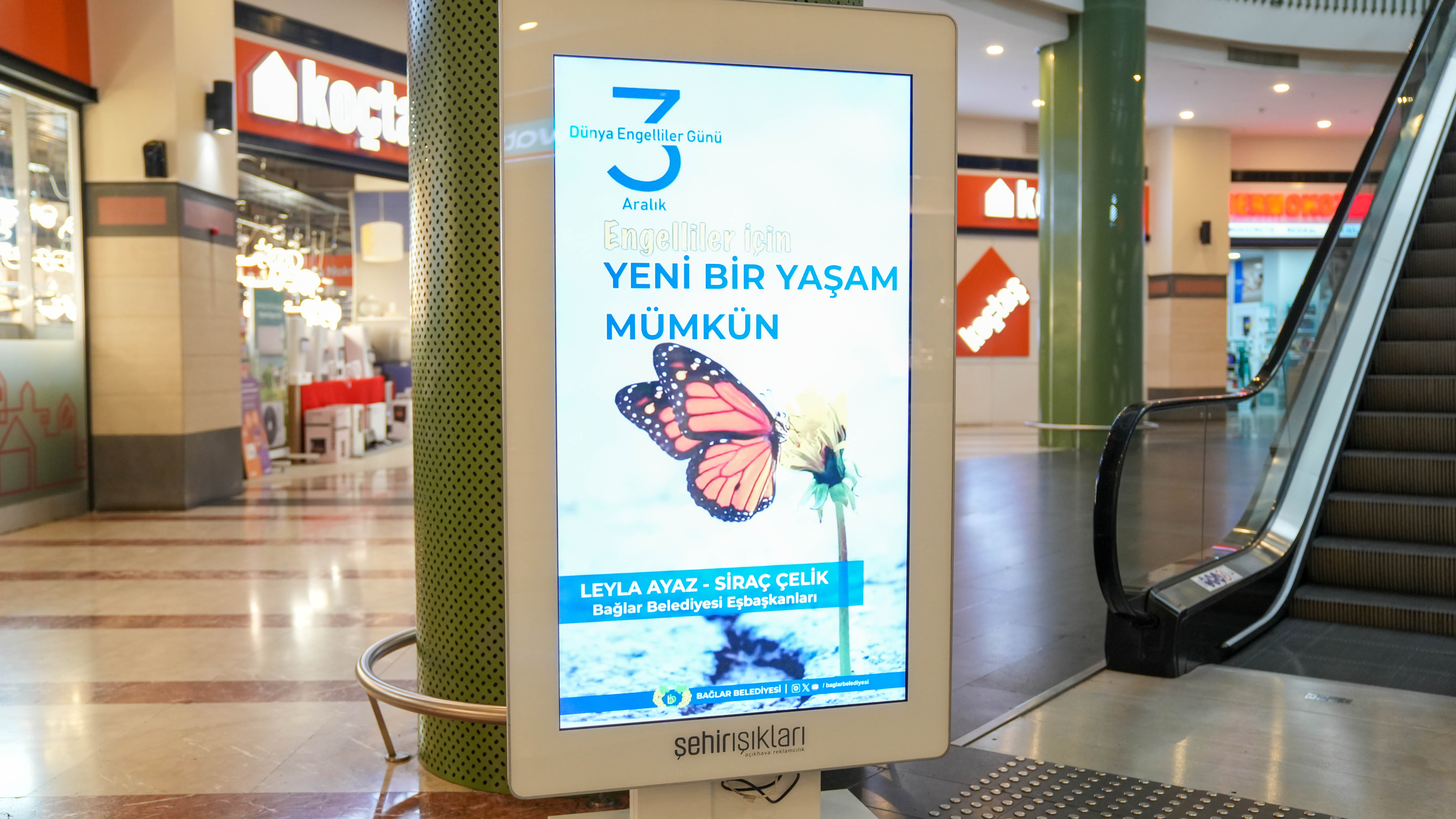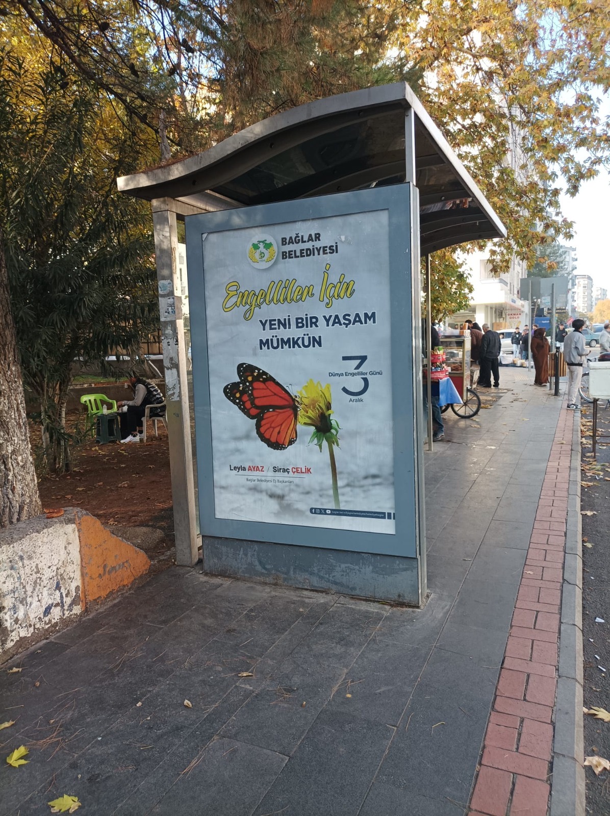 Bağlar Belediyesi Engelli ve Yaşlı Hizmetleri Müdürlüğü, “Engelliler İçin Yeni Bir Yaşam Mümkün” sloganıyla farkındalık çalışmalarına devam ediyor. 3 Aralık Dünya Engelliler Günü çalışmaları kapsamında AVM’lerde ve duraklarda afiş, bilboard çalışması yaptı.
