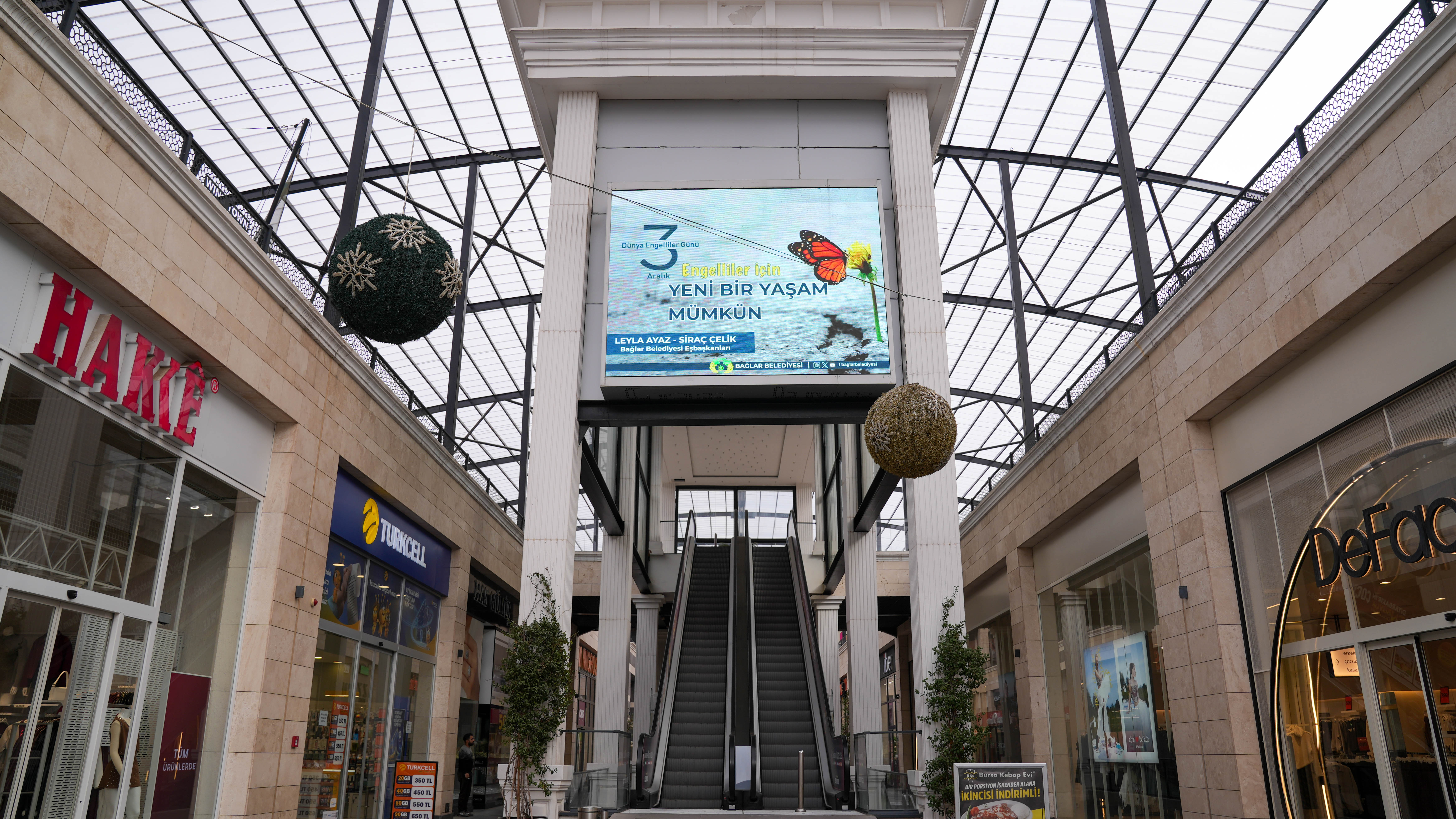 Kentteki Ceylan AVM’de hem LED ekranda “Engelliler İçin Yeni Bir Yaşam Mümkün” sloganı yayınlanırken, hem de AVM içinde afiş ve bilboardlarla farkındalık yaratıldı. Forum ve Winstown AVM’lerinde de bilboardlar yapıldı.