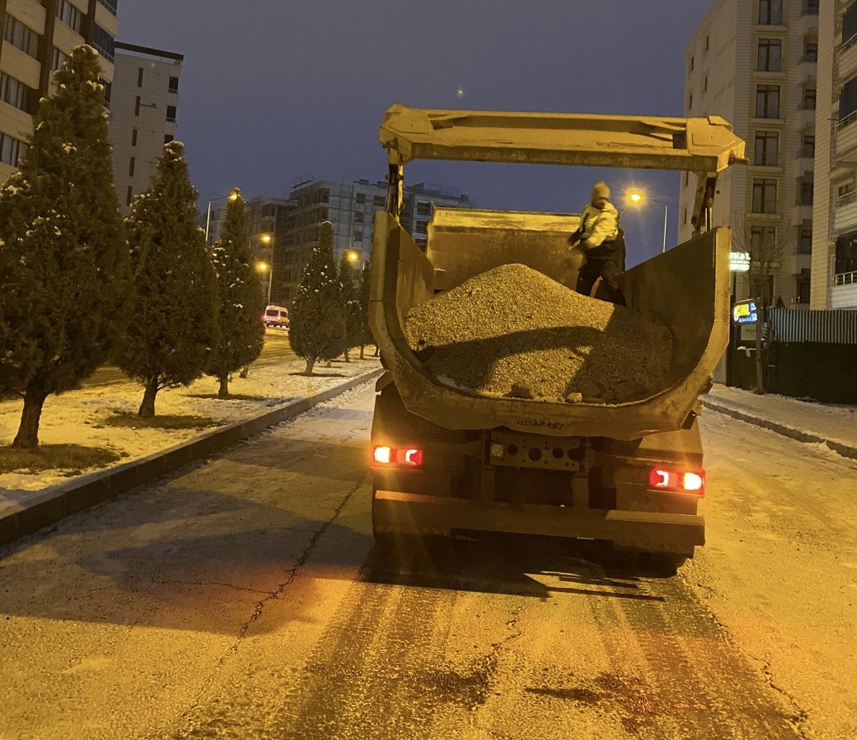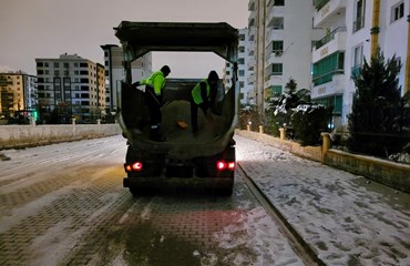 Don ve buzlanmaya karşı yollarda, kaldırım ve yaya geçitlerinde kar temizleme ve tuzlama işlemleri yapılıyor. Kırsal mahallelerde ulaşımın aksamaması için mesai devam ediyor.