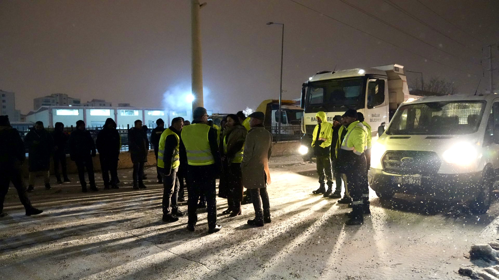 Diyarbakır'da etkili olan kar yağışı dolayısıyla Bağlar Belediyesi ekipleri 3. günde de sahada hazır. Eşbaşkan Siraç Çelik, saat 05.00’te araçaların bulunduğu ve emekçilerin hazırlık yaptığı Şantiyede çalışmaları inceledi. Çelik’e Eşbaşkan yardımcıları Jiyan Aslan, Reşat Yücel, Suat Özdemir, Uğur Alyüz ve birim müdürü Ulaş Birtane de eşlik etti.