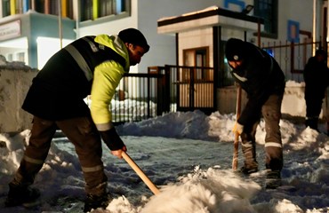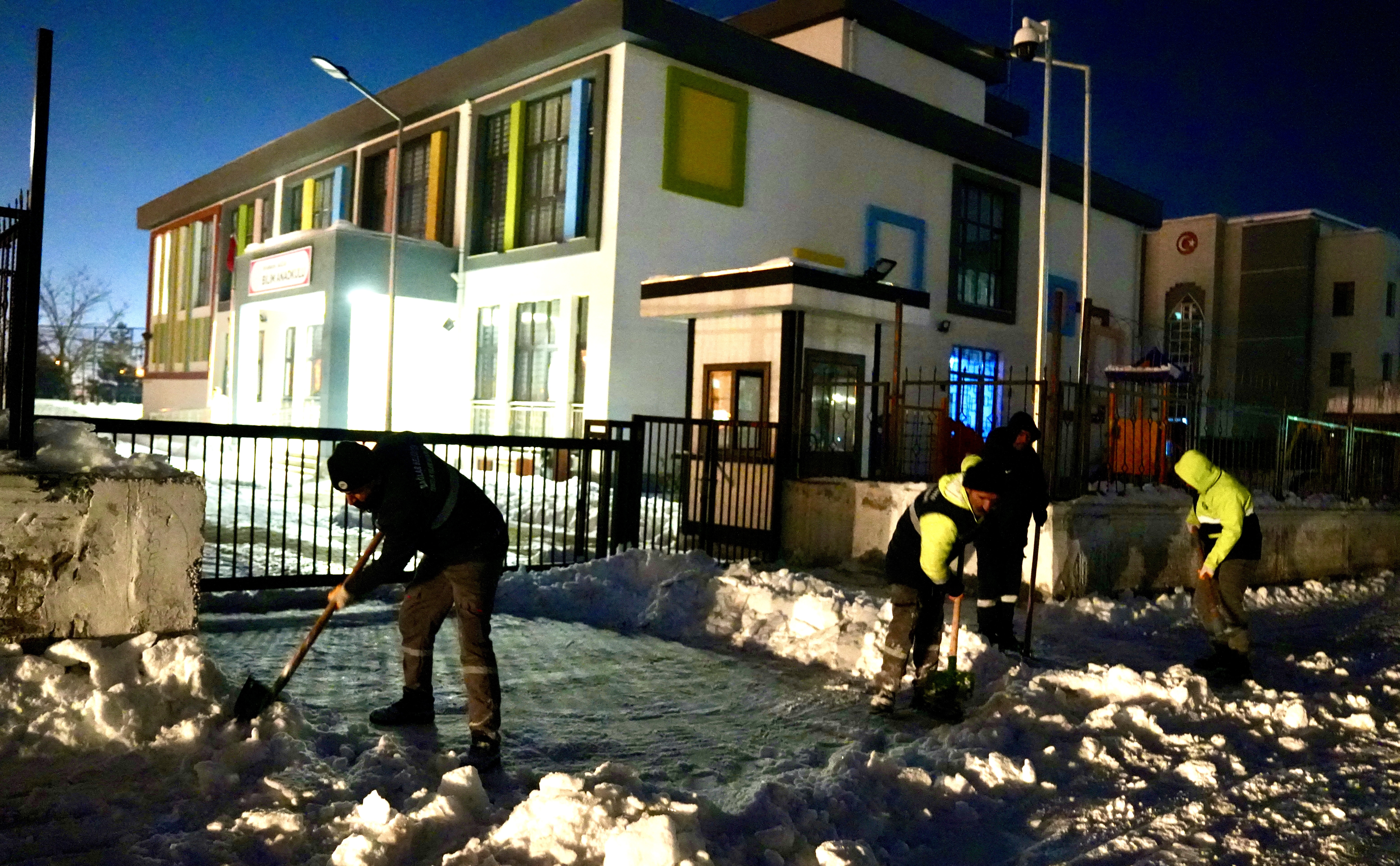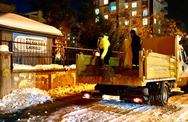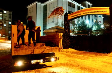 4 ayrı koldan çalışmaları yürüten gece ekipleri, tüm okul yollarını sabah için hazır etti. Sadece okula çıkan yollar değil kaldırımlar, kapı girişleri, bahçeler de temizlendi.