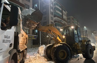 Bağlar Belediyesi Fen İşleri Müdürlüğüne bağlı ekipler, ulaşıman aksamaması için gece ekipleriyle birlikte kar kaldırma çalışması yürüttü.