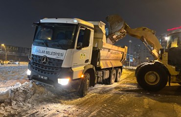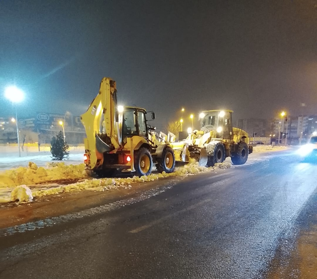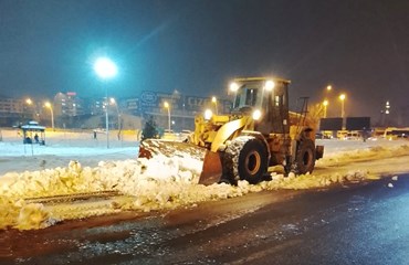 6 kamyon, 1 loder, 2 kepçe ile gece çalışma yürüten ekipler, kar kaldırma işlemi ile ulaşımın daha rahat ve sağlıklı devam etmesini sağladı.