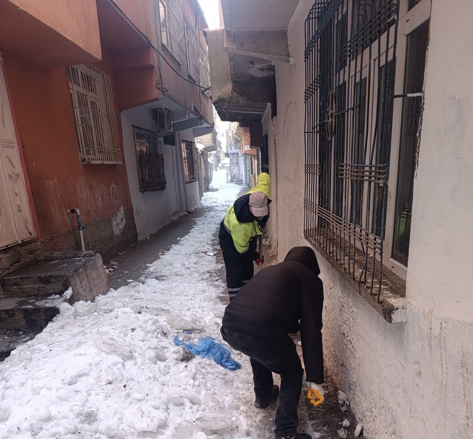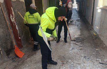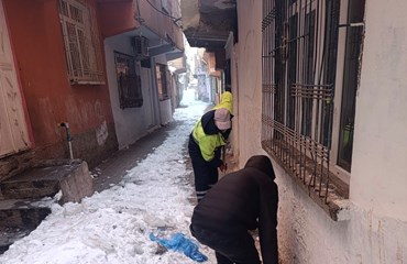 Bağlar Belediyesi Temizlik Müdürlüğüne bağlı ekipler, Eski Bağlar'ın mahallelerinde ara sokaklarda ulaşımın aksamaması için çalışmalarına devam ediyor.