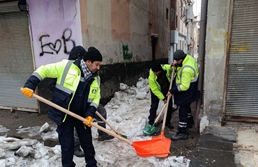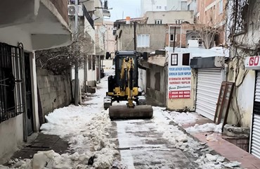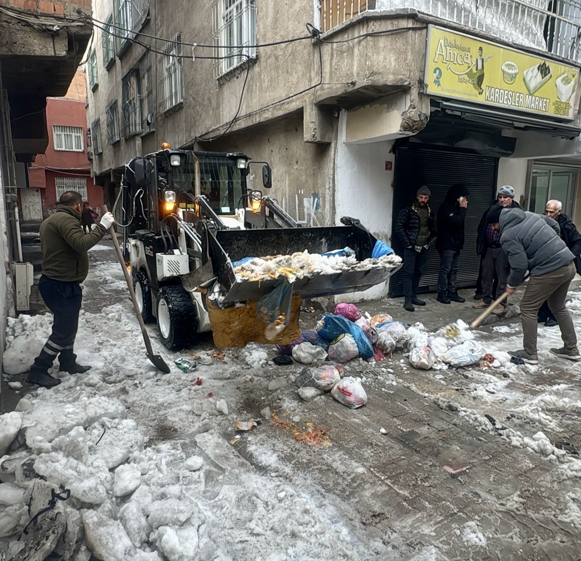 Bağlar Belediyesi Temizlik Müdürlüğüne bağlı ekipler, Büyükşehir Belediyesi ekipleriyle birlikte Eski Bağlar'ın mahallelerinde, ara sokaklarda ulaşımın aksamaması için çalışmalarına devam ediyor.