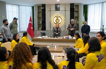 Büyük başarılara imza atan sporcular kupalarıyla birlikte Eşbaşkanlar Leyla Ayaz ve Siraç Çelik’i ziyaret etti.