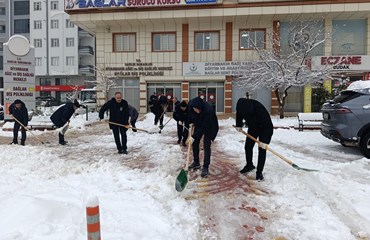 Zabıta Müdürlüğüne bağlı 30 kişilik ekip ise 3 ayrı koldan kaldırımlarda ulaşımın sağlaması için çalışıyor. Ekipler, özellikle hastaneler, semt poliklinikleri ve halkın sıklıkla kullandığı kamu binaları çevresinde aktif bir şekilde çalışıyor.