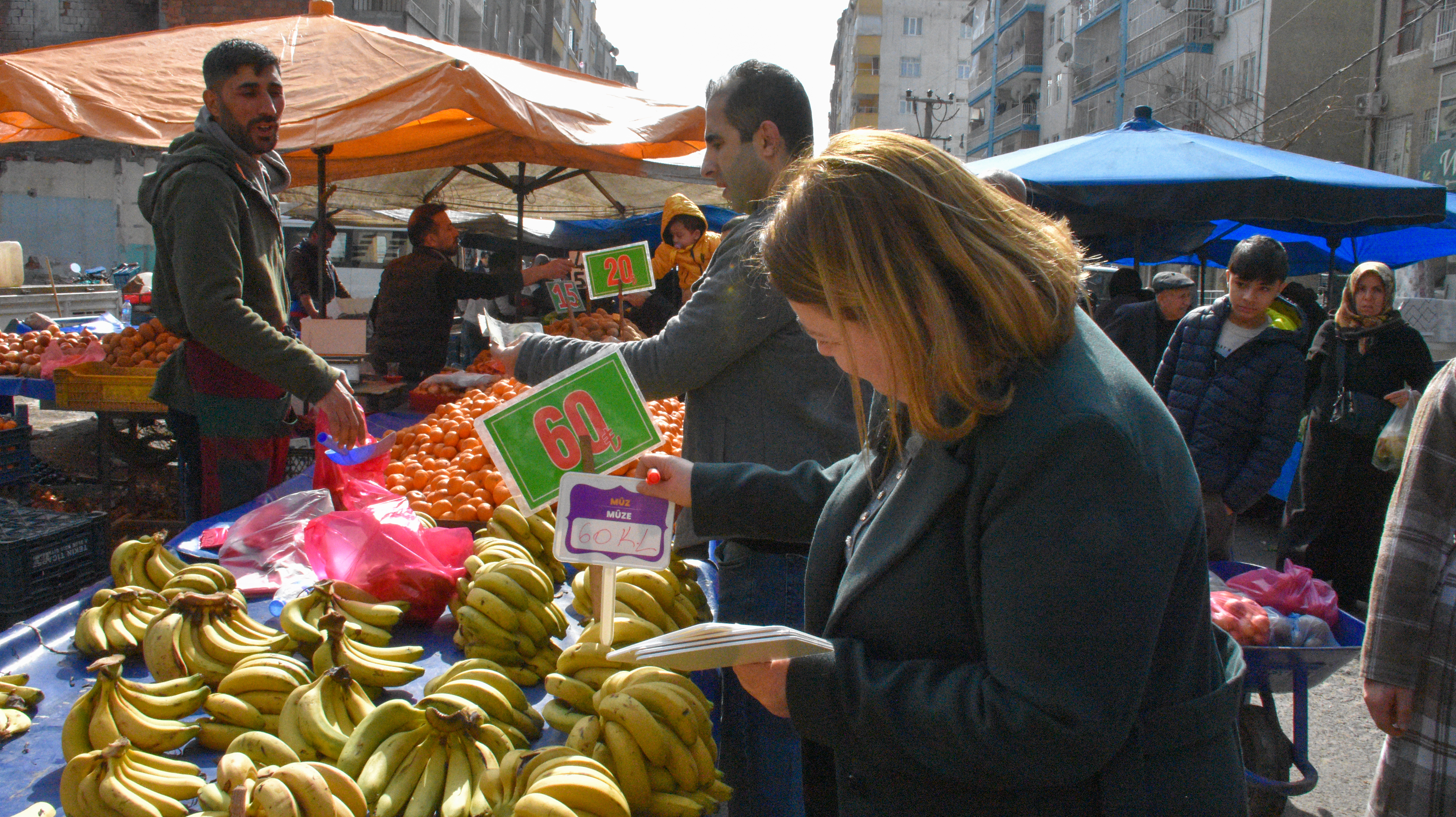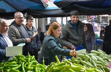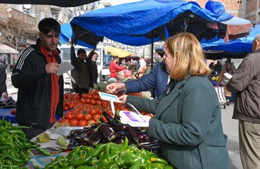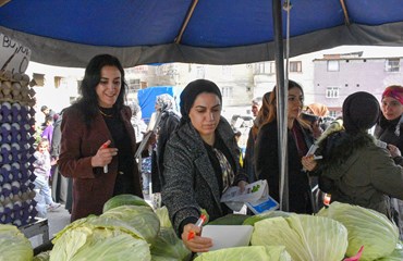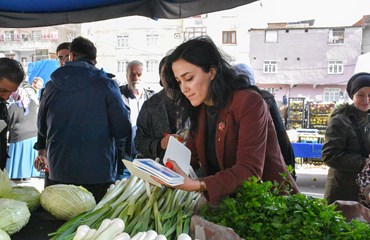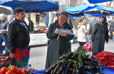 Bağlar Belediyesi Eşbaşkanı Leyla Ayaz 21 Şubat Dünya Anadil Günü çalışmaları kapsamında pazar esnafını ziyaret ederek anadilin önemine dikkat çekti.