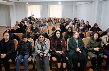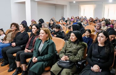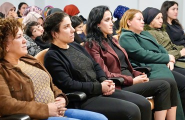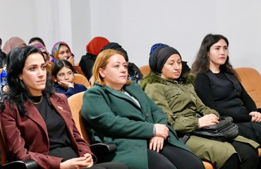 Ayaz’ın konuşmasının ardından kurum psikoloğu 8 Mart’ın tarihçesi, anlam ve önemine ilişkin bir sunum yaptı. Eşitsizlik, şiddet, güvencesizlik, cezasızlık politikalarına dikkat çekilerek, eşitsizliğin sadece fiziksel mekanlarla sınırlı olmadığı dijital alanında şiddetin yeni yüzlerinde biri haline geldiği vurgulandı. “Kadın bedeni üzerinden kurulan tahakküm yalnızca bireysel bir sorun değil, sistematik bir sorun biçimidir” denildi. Savaş süreçlerinde kadın bedeninin sistemli biçimde hedef alındığına dikkat çekilerek, cinsel şiddetin bir savaş yöntemi olarak kullanıldığına vurgu yapıldı.