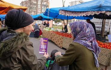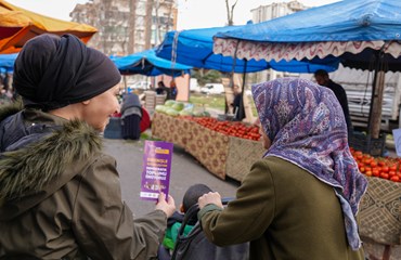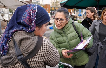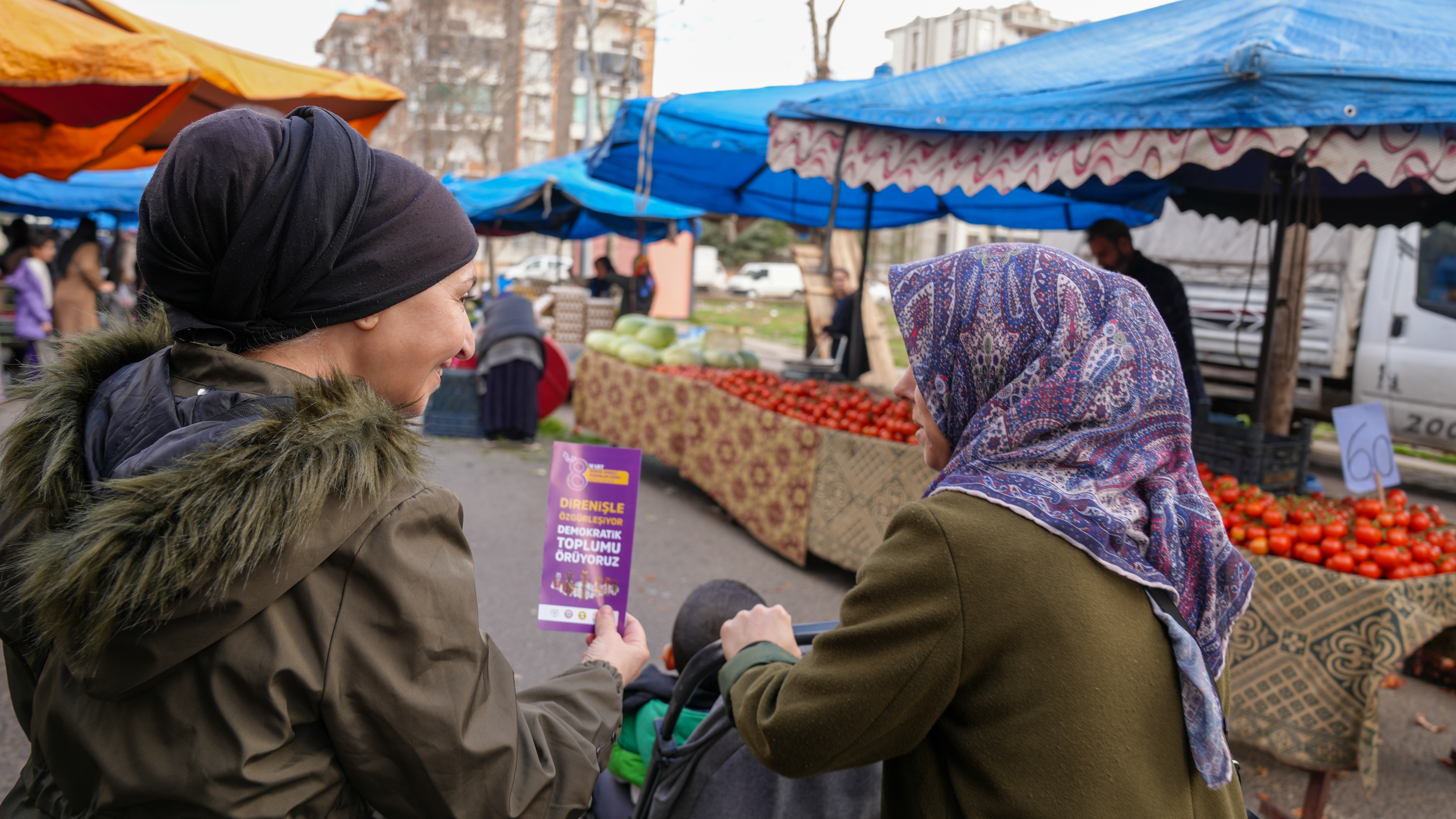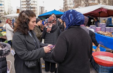 Bağlar Belediyesi Kadın Politikaları Müdürlüğü, 8 Mart çalışmaları kapsamında pazarda kadınara ulaşarak broşür dağıttı.