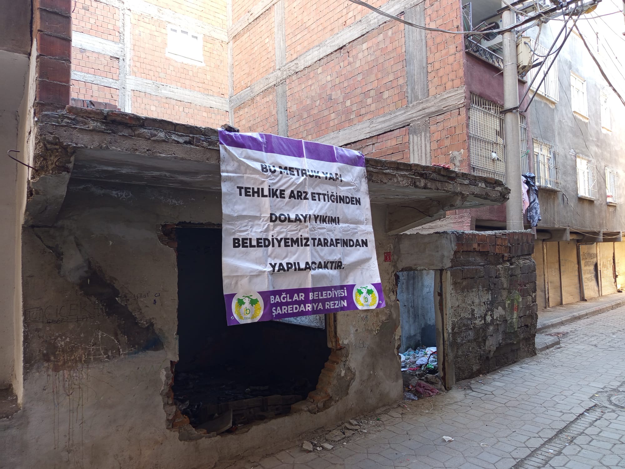 Bağlar Belediyesi başta çocuklar olmak üzere can güvenliği riski oluşturan metruk yapıların yıkımına devam ediyor. Fen İşleri ile İmar ve Şehircilik müdürlüklerinin çalışması ile 5 Nisan Mahallesi 861 Sokak’ta metruk yapı yıkıldı. Yapı kontrollü şekilde yıkılarak çevreye yönelik riskler önlendi.