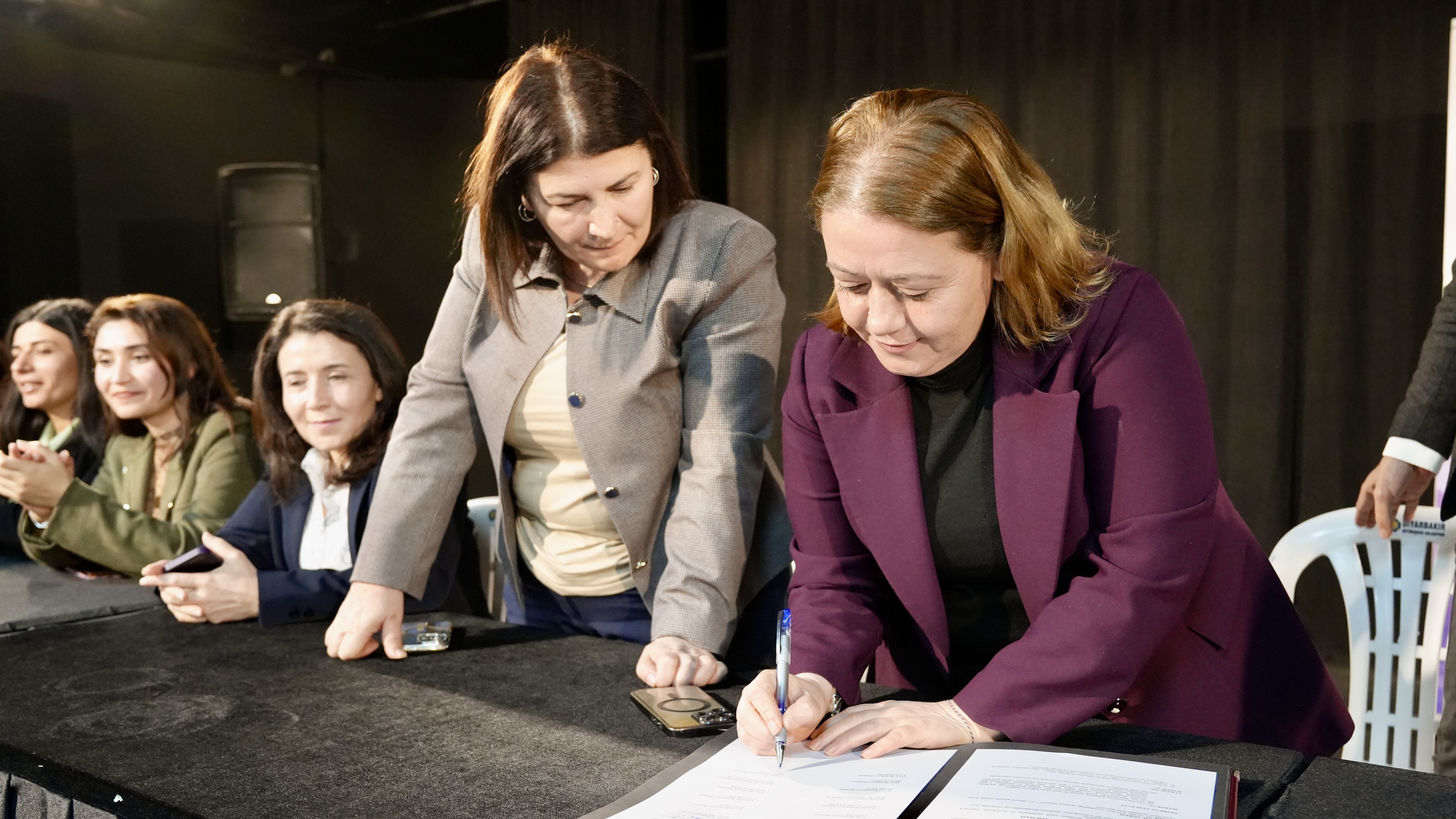 Bağlar Belediyesi, Diyarbakır Büyükşehir Belediyesi ve kentteki DEM Partili ilçe belediyeleri ile Diyarbakır Barosu arasında, kadınların adalete erişiminin kolaylaştırılması, hak temelli destek mekanizmalarının güçlendirilmesi ve toplumsal cinsiyet eşitliğinin yerel yönetimler düzeyinde kurumsal olarak desteklenmesi amacıyla iş birliği protokolü imzalandı. Protokolün imza töreni Ali Emiri Konferans Salonu’nda yapıldı. Törene Bağlar Belediyesi Eşbaşkanı Leyla Ayaz, Büyükşehir Belediyesi Eşbaşkanları Serra Bucak ve Doğan Hatun, Diyarbakır Barosu Başkanı Abdülkadir Güleç, ilçe belediye eşbaşkanları, sivil toplum örgütü temsilcileri, Diyarbakır Barosu üyeleri ile baronun Kadın Hakları Merkezi üyeleri ve ilçe belediyelerinin kadın müdürlüklerinde görev yapan kadınlar katıldı.